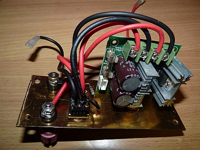 The variable speed works very smoothly from zero revs up to full speed. Unfortunately, the on/off switch I fitted is not man enough for the job and the contacts welded together virtually straight away! I discovered that there is a very heavy current draw when you first switch the speed controller on as there are two very large (1000uf) capacitors on the input side of the controller which charge up when first connected. I could probably get rid of one of the capacitors as the controller is fed from the batteries rather than a mains supply but I want to use it tomorrow when I go to the 2½" gauge rally at Stockport and I can't be bothered to mess around with it again at this late stage. I just switch it off by pulling one of the battery leads off! Return to ME home page