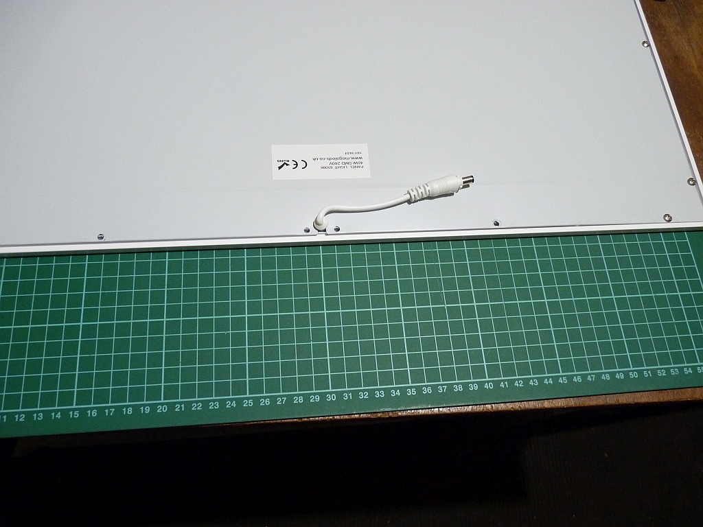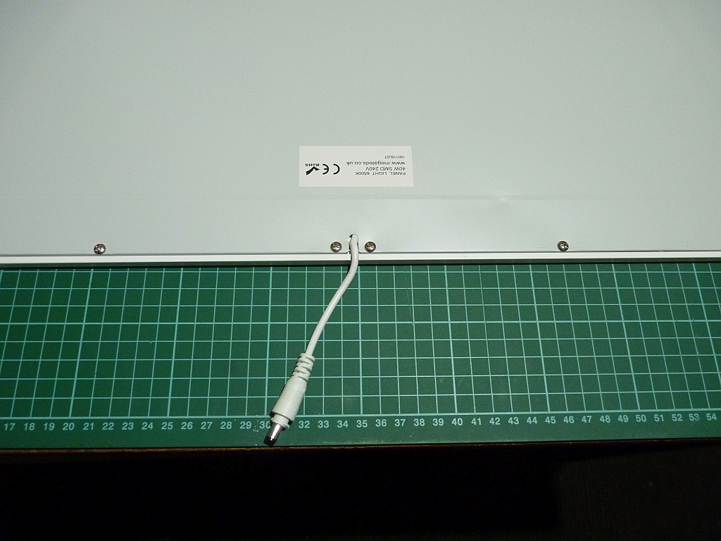 These LED fittings are mainly used in suspended celings (as were those at the club) but they can be mounted onto a conventional flat ceiling. You can buy a celing mounting kit but these are about 50mm deep as they are designed to hold the power supply for the fitting. I would not have been any better off using these as I would probably still have banged my head on the things! Instead, I mounted the panels directly to the ceiling using mirror brackets on each corner. The panels are only 9mm thick so these mirror brackets were ideal. The power supplies were then just mounted on the ceiling in a convenient position and wired up to the existing mains cabling. I did modify the cable exit on the panels. As received, the cable comes straight out of the back of the panel which would have made it difficult to mount the panels flat against the ceiling.