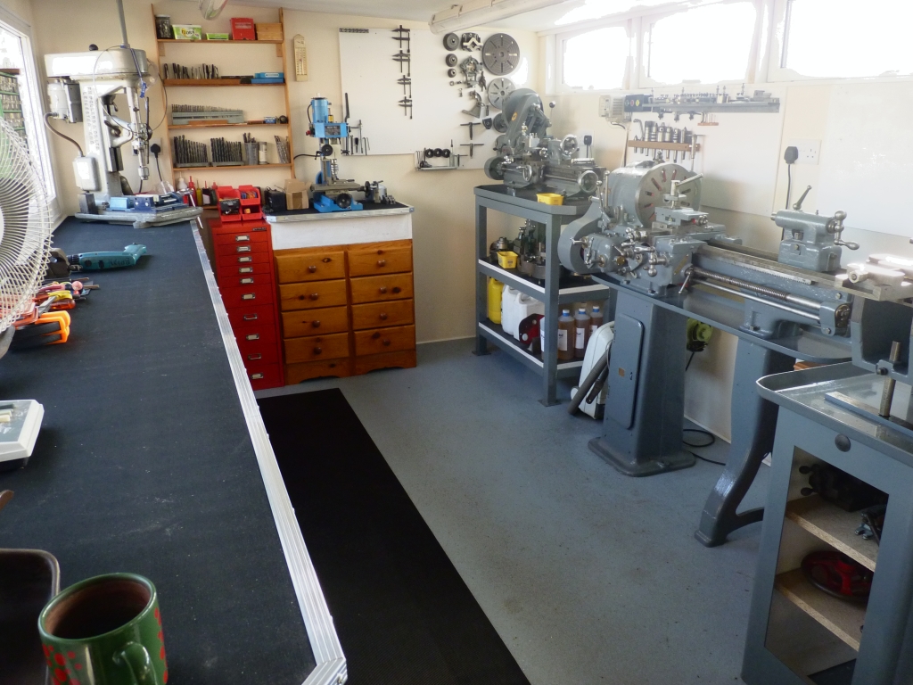 As there is a lot more headroom at the front of the workshop I didn't have to mount the panels flush to the ceiling. This avoided having to alter the cable on the panels like I did on the other panels over the lathes and the mill. I mounted the panels using the little Z clips that came with the panels so they stand off from the ceiling by about 10mm. 13/07/2019 I've been thinking about the storage problems that I'm having and I'm considering getting another shed to go alongside the steel one. I'm leaning towards a wooden one this time so that it can easily be lined and insulated. I would have a bench all down one side and more shelf units along the other. I could then move the Pollard drill off the bench in the workshop and also put the tool and cutter grinders on the bench in the shed. At the moment these are still in the back bedroom of the house and don't really get used very often. I have a small bandsaw that I bought years ago and that could be set up in the new shed as well. At the moment I haven't the room to set it up anywhere so it doesn't get used. The shelf units could be used for materials and other stuff that will eventually go rusty in the steel shed. The only problem with wooden sheds is that decent ones cost a fortune. I may look into building one from scratch as, like the workshop, I can build a better quality one for the same price as a bought one or even less. I don't need windows in it as I would want to maximise the storage space so that would make it easier to build. I could use a similar construction to the workshop i.e. a suspended wood floor and wood frame with steel cladding. I will have to give it some thought. 07/10/2019 I've finally got around to ordering some double glazing units for the workshop to replace the 'temporary' single panes in the front windows. It's only taken me about 8 years! I have been getting condensation on the inside of the glass when I'm working in there when it's very cold outside so the new units will stop that. Also, I need to start replacing some of the sealed units in the house as they are about 40 years old now and the seals on many of them have broken down resulting in them misting up inside. So, I killed two birds with one stone and ordered the two units for the workshop and one for the end of the kitchen in the house. My brother Mick came around to help me change them as I'm not as strong as I used to be and the units were too heavy for me to manage on my own. The job went pretty smoothly and quickly but I found a problem when I came to refit the seals on the inside of the frames. When I refitted the old units to the small windows at the back of the workshop I had ordered new sealing rubbers for those and also enough for the two big windows at the front. Unfortunately, the new sealed units are 1mm narrower that the old ones and the inside seals were too thin to hold the units in place properly so I've had to order some thicker seals. They should arrive in the next day or so. Until then, the units are help in place with some plastic spacers. I did replace the outside seals when I fitted the single panes so those are ok. I think the problem with the new units being thinner may be that the old units are probably imperial as they are 40 years old and the glass and the spacers may be slightly thicker than the modern metric version. I wasn't sure what seals I would need to fit the thinner units but most of the suppliers on Ebay seem to offer a 'Sample' pack of the various sizes so I ordered one of those and then tried the various seals until I found the one suitable. The outer seals on the kitchen window were pretty perished and brittle so I replaced those as I had some left over from the workshop. The inner seals were still usable but I did order enough of the new larger seals to replace those if necessary. It's nice to be able to look through a clear window for a change! The new sealed units are better quality than the old ones, being Argon filled and have a heat reflective coating on the glass. Hopefully, they will be a bit more efficient. The next job will be to replace five units in the bay window at the front of the house. They are smaller so I can probably manage those myself. I've noticed that a couple of the other LED panels in the workshop have started flickering occasionally. The problem seems to come and go and I wonder if the electronic power supplies are affected by temperature? I have got some more spare power supplies so if the problem continues then I'll change the offending ones. I fitted one of the same LED panels in my kitchen as it has a suspended ceiling and that had a spate of flickering now and again not long after it had been installed. It hasn't done it recently so I don't know what the problem is! 31/05/2024 Not much has changed in the workshop over the last few years but a lot of 'excess' stuff has now been moved into the new shed to make more space. The other day I decided that the big Pollard bench drill on the end of the bench was not needed. I've only used it once or twice since it was installed as I do all my drilling in the milling machines. So, I dismantled it and took it off the bench. I had forgotten how heavy it was, even when dismantled into smaller lumps. It was a real struggle to get it down off the bench! That has made a bit more room on the bench and also allowed access to the end wall so I put up a couple of small shelves. I have also put a shelf at the bottom of each window so I can put small stuff on those instead of on the back of the bench. Every little bit helps to keep the bench clear. Those big windows are great for making the workshop bright but they do remove a lot of wall space that could be used for useful shelving.