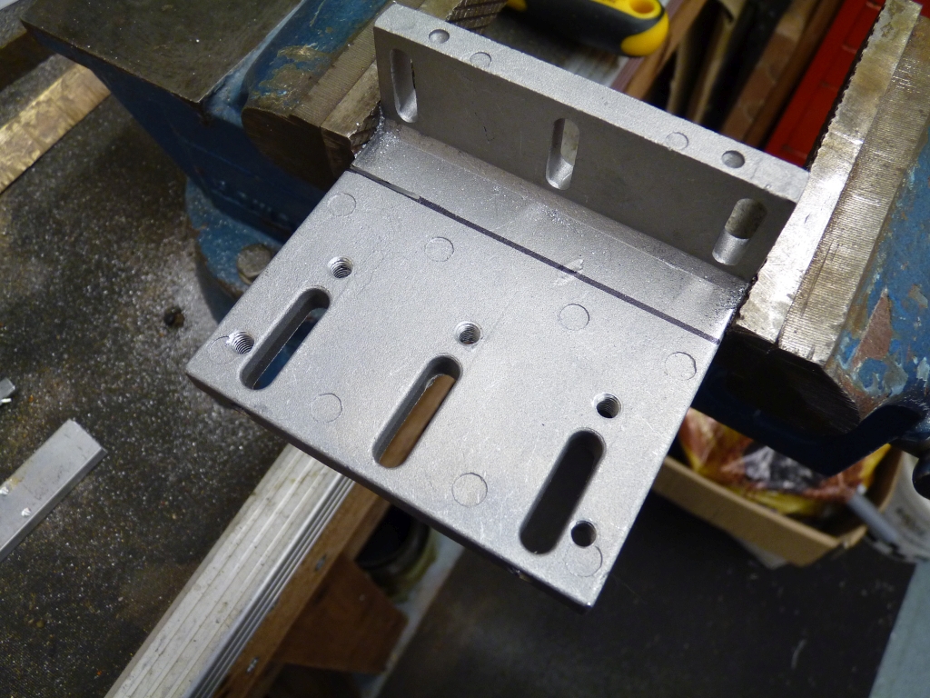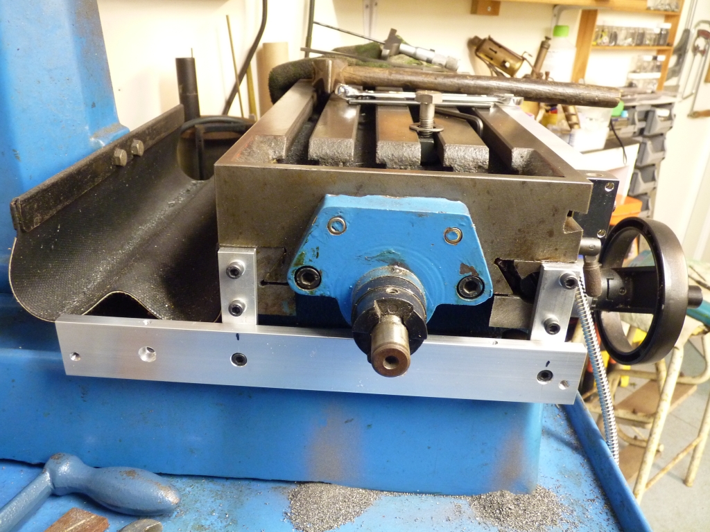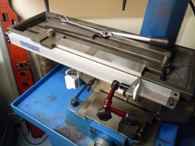The righthand bracket in the photo needs a bit cutting out so that the gib adjustment screw can still be easily reached. The scale was then bolted onto the horizontal bar.