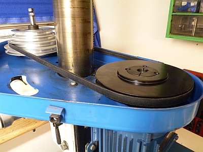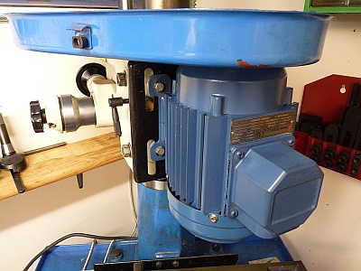 I did notice a bit of play in the top spindle bearing, probably caused by the tension of the belts, but the bottom bearing seemed fine. Maybe something to think about in the future. As mentioned before, I already had a brand new 1HP 3 phase motor that I had bought some years ago but never used so that was fitted in place of the original 1 HP single phase motor. I had to alter the mounting bracket by filing the slots for the mounting bolts on one side as the new motor mount was slightly narrower than the old one.