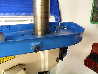 The bottom end of the scale will be attached to the depth stop mounting on the end of the quill so that it moves with the quill. Firstly though, I have to get rid of this problem with the quill rotating back and forth slightly. As mentioned, the quill is stopped from rotating by a grub screw with a machined end that rides in a vertical keyway in the side of the quill.