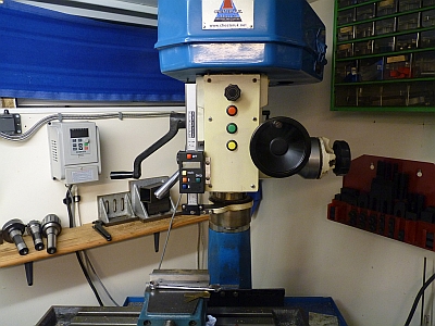 I haven't bothered to label up the controls as I know what they are. I've just used forward, reverse and stop for the push buttons. I can always add the jog facility if I need it. One thing I have noticed is that the motor will not start until the rpm setting reaches over 100 rpm and there is absolutely no torque at this setting. The torque is fine once the rpm gets past 150 rpm. Perhaps I need to look at the vector control settings? I was still geting a lot of vibration at certain speeds but noticed that this was greatly improved if I locked the spring loaded plunger on the motor mount that tensions the belt. When it was left loose the belt tends to flap about a bit. Now that I don't have to change belt positions to alter the spindle speed I can permanently refit the top cover to the mill and keep the belt and pulleys covered again. 10/10/2018 I've decided to go ahead and get the parts to make a power feed for the X axis of the table. I won't be working on it until after the Midlands Model Engineering Exhibition as I've got a lot to get ready for the stand that we have there.