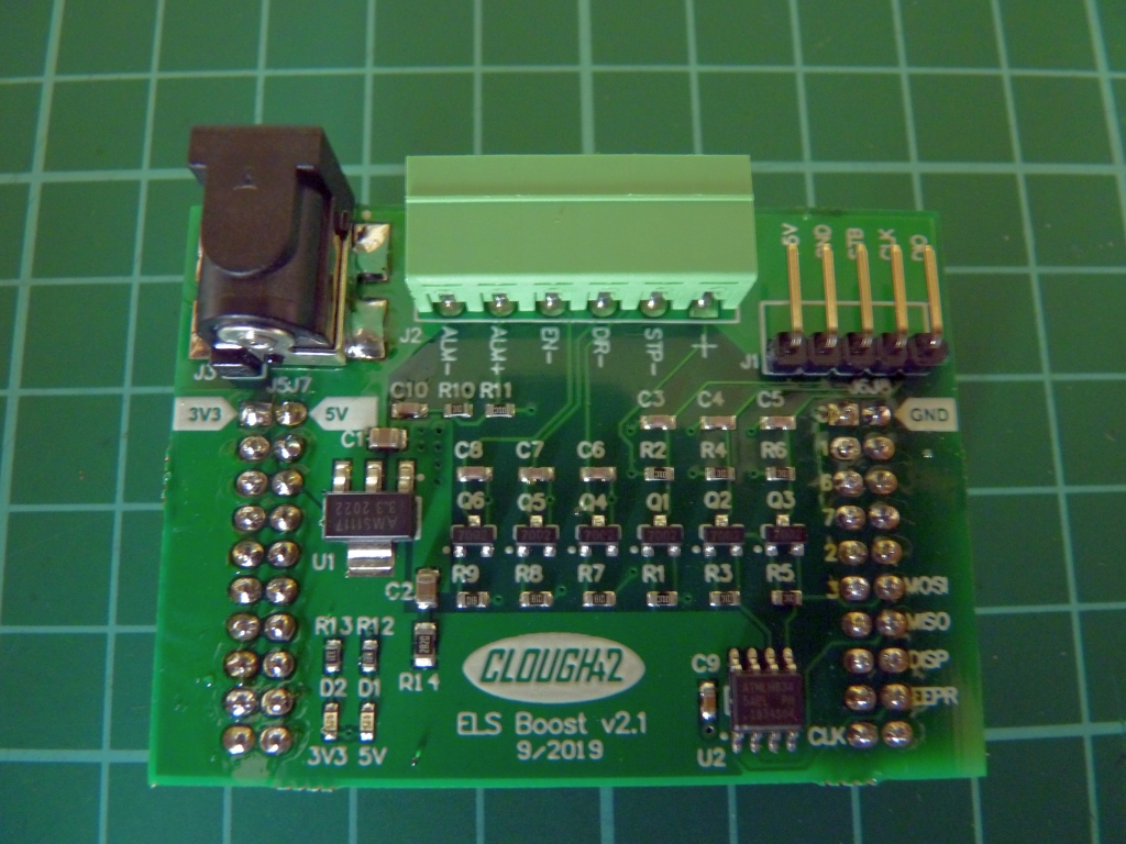 Top left is the rotary encoder for the lathe spindle, middle top is the servo motor, then a 5 volt 'Wall Wart' to power the electronics. I had a few of these lying around so didn't need to buy one. Under the encoder is the fascia panel for the control box and in the middle is the microprocessor board with the electronics for the control panel underneath. The box on the right is a standard 48 volt power supply for the servo motor. All it needs is some mounting hardware for the encoder and the servo (when I've decided how to fit them!), wiring and a box to put it all in. The total cost so far is about £260, the most expensive item being the servo motor. The servo motor does have the driver electronics built in however so no extra driver unit is required unlike with a stepper motor. For anyone interested, here is the link to the Github page that James has made which will help if you decide to follow a similar route. You can also download the software for the processor board from here: https://github.com/clough42/electronic-leadscrew/wiki I don't know how much time I will be spending over this project as I would like to get the Green Arrow completed and the ELS is not urgent. However, I did assemble the control panel and the Boost Board. The control panel PCB requires the 5 pin connector changing to a right angled job to make it easier to attach the connector cable but that is no problem. A new connector is included in the kit. Then it's a case of bolting the board to the front panel and adding the 3D printed buttons.