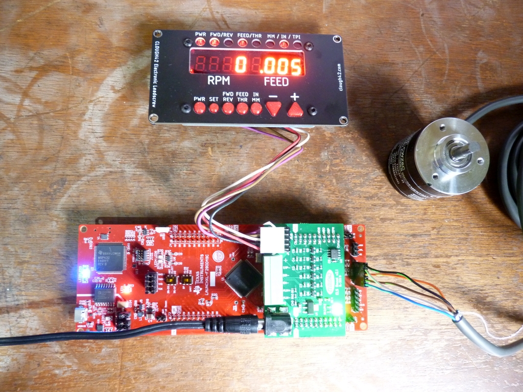 I think I will wire it all up on the bench first to check that everything works but I need to order some connectors before I can do that. 29/07/2021 I thought I would have a play with the software and try downloading it onto the microprocessor board. I made up a temporary lead to connect the display board to the microprocessor board and then downloaded the required software to flash the ELS software onto the mcu board. The required software is called Code Composer Studio and is downloaded from the Texas Instruments website. You need to make sure that you have version 9 which was used to create the ELS software. There is now a version 10 but the ELS software will not work with that at the moment. James has an excellent video about how to download all the software and use it on his Youtube channel. The ELS software has two versions - A 'Debug' version and a 'Release' version. The Debug version runs slowly so that you can hopefully find any problems with it (if you know what you are doing, which I don't!) and the Release version is the faster, trimmed down working version that is loaded permanently to the mcu board. The debug version is not flashed permanently onto the mcu board and is lost if you remove the power from the board. I managed to get the debug version to work fine but the Release version failed and not knowing anything about code I didn't know why. I did put a question on the Github page to see if anyone could help but I eventually got it to work by putting the software files into a different folder on the computer. I don't know why that solved the problem but it did which is all that matters! I could now flash the ELS software permanently onto the mcu board. When the board boots up it displays 'Clough42', then the release version of the software before finally going into operational mode which initialises at the fine feed mode.