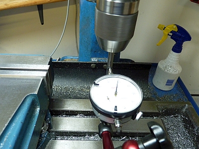 There was a bit of discolouring on some of the parts but no corosion and everything looked in good condition. I lightly stoned the jaws to remove some small burrs on the edges where the drills are gripped, greased everything where needed and reassembled it. I thought that I would try it as it was before splashing out £60 on new jaws! I had bought an arbor to fit (R8 to JT6) so fitted that and put the chuck in the mill. I tested the runout as for the chinese chuck.
