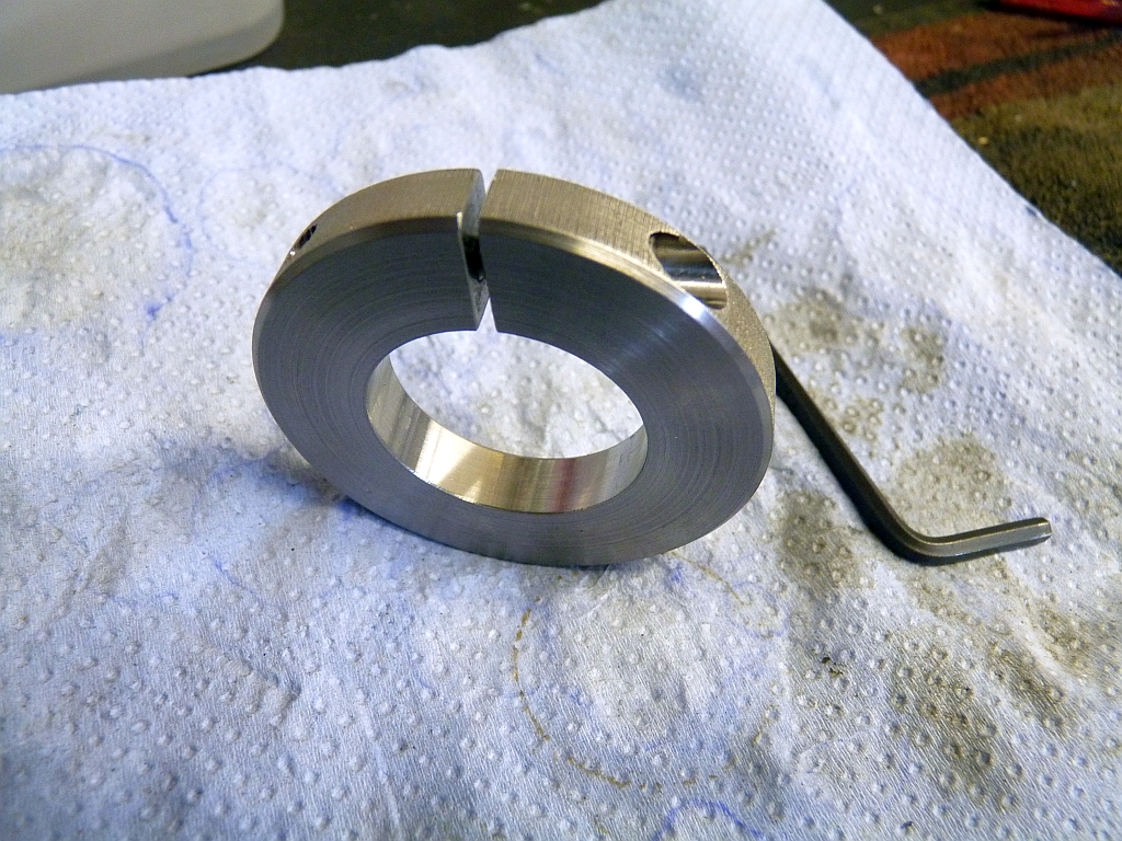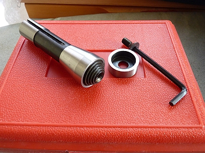 I've also picked up another couple of DTIs, a Verdict and a Mitutoyo, and a box of loose gauge blocks. I find them useful for packing when you are clamping stuff in the mill vice etc. I don't mind using old gauge blocks for that. I've got a set of good quality ones for 'best' use. 27/01/2019 Today I decided to have a change from the Britannia and make the missing collar for the Albrecht chuck. I had some odd steel blanks which would be suitable so after some simple turning and boring I had a suitable collar. It was set up in the mill to drill and tap the holes for the clamping screw and the slit put in the collar with a slitting saw. I used the new R8 slitting saw arbor for the saw and, as I suspected, it does not hold the saw very truly and the saw had a distinct wobble from side to side! Still, it got the job done.