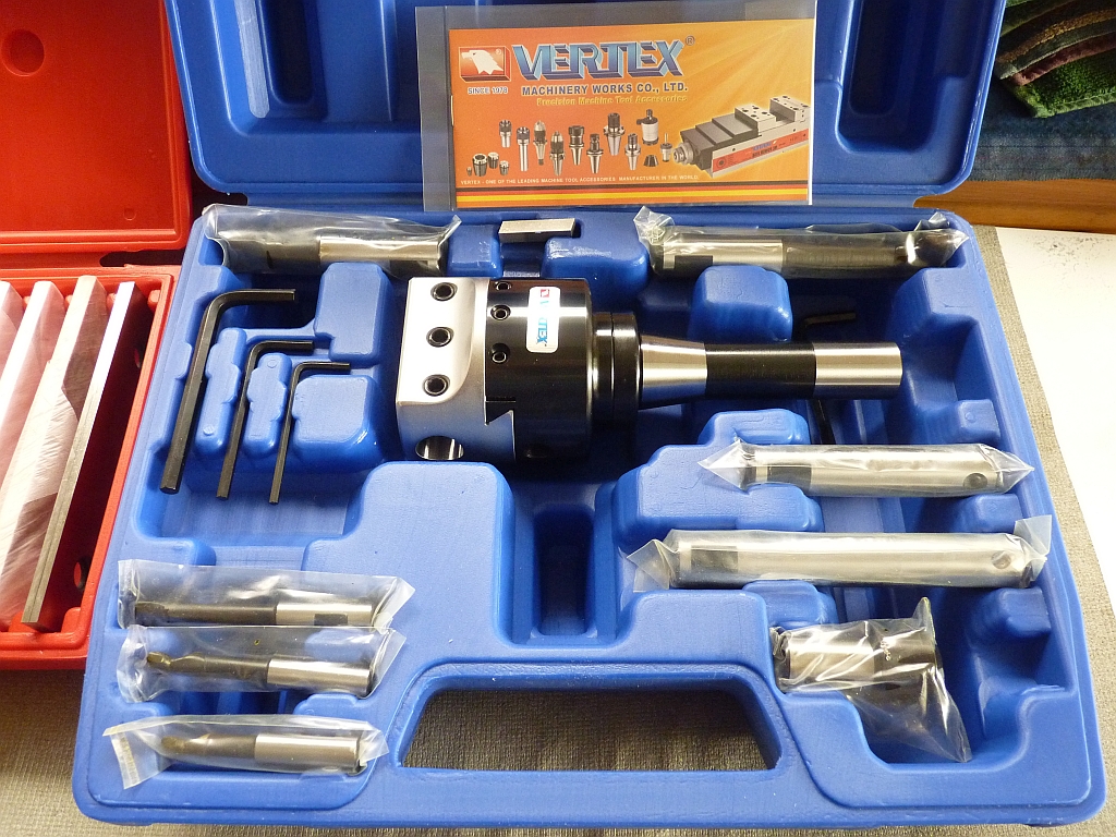 The set comes with two 18mm boring bars that take a HSS square tool bit, two 18mm carbide tipped bars and three 12mm carbide tipped bars with an adapter. The action of the head adjustment seems very smooth and precise.