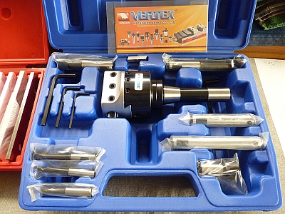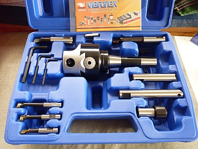 15/02/2017 Over the last few months I've bought quite a lot of secondhand Mitutoyo digital calipers and micrometers. Some of them are in good condition and some not so but all of them work and I got them at very good prices. I did buy a few faulty ones as well very cheaply with the idea that I might be able to repair them. One of the calipers sold as faulty just wanted the battery contacts cleaning and a new battery fitting. I was surprised to read that the batteries in the Mitutoyo calipers are supposed to last for over two years. That's a bit different to my cheap Aldi ones that only last a few months! Having said that, I've got five of the cheapo Aldi ones and they all work perfectly and seem to be accurate enough ( I've checked them with gauge blocks). Some of them are maybe 10 years old now. At about £8 each I consider them very good value and ideal for rough work. The Mitutoyo ones will be kept for 'best'. I did buy a cheap 100mm caliper from China as sometimes the 150mm ones are too big to fit in but it is absolute rubbish and very poor quality. I might just cut one of my Aldi ones down and use that. I've also bought a Mitutoyo 150mm height gauge as I didn't have one at all and several sets of telesopic bore gauges which I also didn't have. Other purchases include a couple of nice dial indicators, a couple of magnetic stands for them, and various small tools such as countersink bits and a centre finder. I've been inspired by watching a load of videos on Youtube by people such as Abom79 and Keith Fenner! 19/06/2018 A few months ago I started making a 'Wish List' of all the tools that I would like to get for the workshop and this weekend I crossed a few of them off. The first item was an R8 boring head for the mill. I did have one that a chap at the club gave me but it's seen better days. It needs the gib adjustment screw tightening down as far as you dare to get rid of the play in the dovetails. I had a look around at the options available on Ebay etc. There were a couple of secondhand ones for sale but they seemed a bit expensive, especially as you don't know what condition they are in. Next I looked at the Chinese ones which seemed reasonably priced for a complete set with boring bars etc. However, when I looked at the photos that some of the sellers put up in their listings the quality looked awful. Some looked as though they had had the dovetails hacked out with a chisel! In the end I spent a lot more than I intended to and went for a Vertex from Rotagrip (no association). The quality looked vastly superior to the cheap Chinese ones. I went for a 75mm diameter head which takes 18mm boring bars as I thought this would be a more rigid setup than the smaller heads that only take 12mm bars. It arrived today and the quality does look very good.