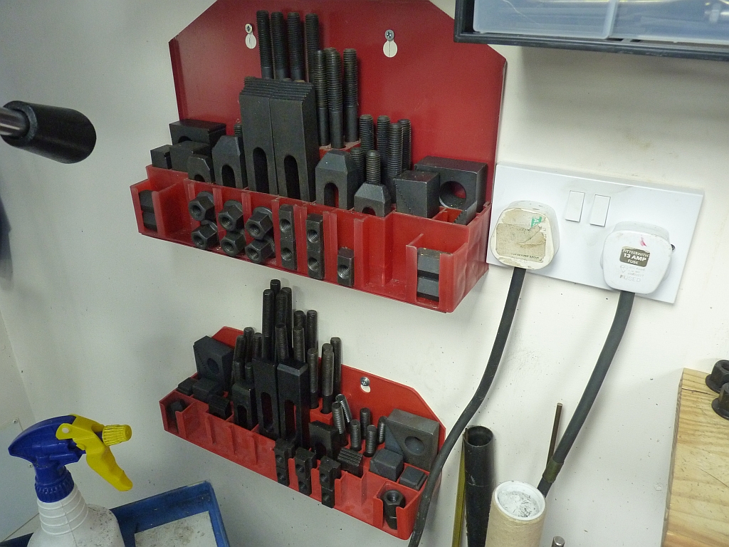 It will be a lot easier to tighten the chuck now. Before I had to use a spanner on the spindle arbor to stop the spindle from rotating whereas now I can just grip the collar. 12/07/2019 I'm still picking up bits and pieces from Ebay. I'm afraid it's a bit of an obsession of mine! I don't think that I am the only one guilty of this though. All engineers seem to suffer from the dreaded tool disease! Some time ago I purchased another clamping set for the milling machine as sometimes I didn't have enough bits for a job in the one that I bought years ago. The new one is definitely a 'cheapy' and not the same quality as the original (it was a lot cheaper though) and the clamps could do with fettling as they have a lot of burrs on them. It's perfectly adequate though for what I'm going to use it for and the parts are all interchangeable with the first set. The only problem is that the nuts won't fit into the plastic holder that comes with the set (they fall out!) so I have to store those on the shelf next door to it.