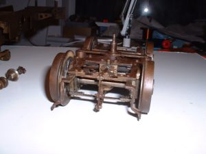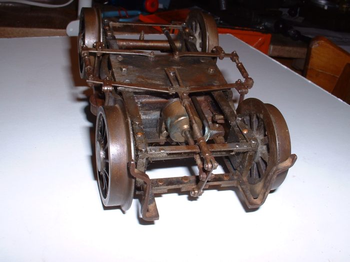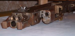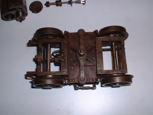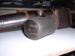 Yet another Ebay item. I had no idea what this chassis was supposed to be and neither had the seller. After much searching and reading I realised that it was destined to be a model of GWR 111, Churchwards ill fated 4-6-2 pacific loco, based on the 'Star' class. The chassis is very well made and highly detailed so I think the original builder must have had access to a set of works drawings. The frames are only 1/16" steel and the cylinders look as though they have been machined from solid chunks of steel. The front bogie even has working steam brakes! Unfortunately there are no wheel castings or other components. A set of wheels did come with the chassis but they are not for this loco. The boiler shell is a work of art and consists of a beautifully rivetted steel barrel and wrapper. I do not know if this was intended to be a working boiler but I suspect it may have been. I can't see me doing much with this loco but it makes a lovely ornament!