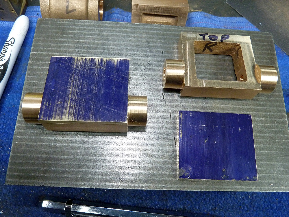 06/05/2020 As usual with raw castings it's a case of deciding which face to make a start on, For the steam chest castings I picked the bottom face as that was the flattest. With a bit of filing and rubbing on emery paper I got the castings so that they would sit on the surface plate without rocking.