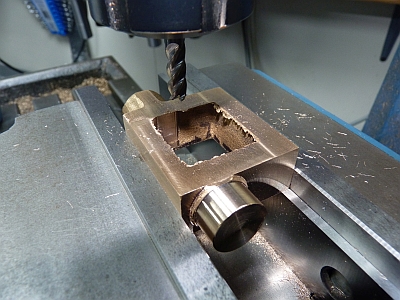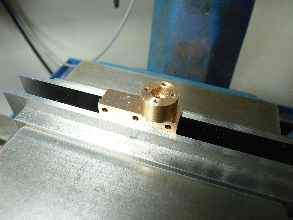 The bore was then reamed with a 4mm reamer and the holes for the bolts drilled and tapped.