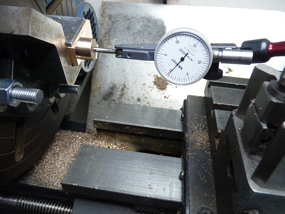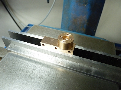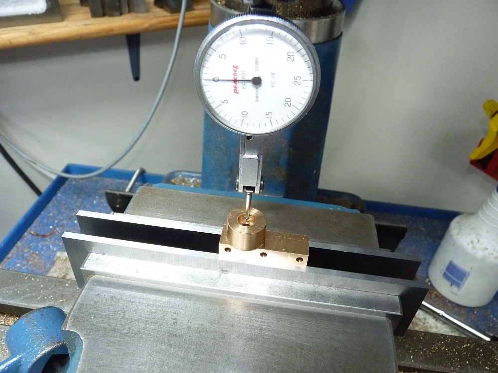 That would probably have been good enough for drilling and tapping the holes but I also wanted to ream the valve spindle bores to 4mm so I 'tweaked' the position using an indicator in the mill spindle. I indicated on the bore for the O ring seals as that was easier than trying to get into the much smaller valve spindle bore.