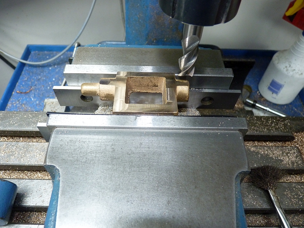 Before tackling the mounting holes I decided to make the steam chest covers. The originals were no good to fit the new steam chests so I made new ones from some 1/8" brass. Just a case of cutting out a couple of blanks and then milling them to size.