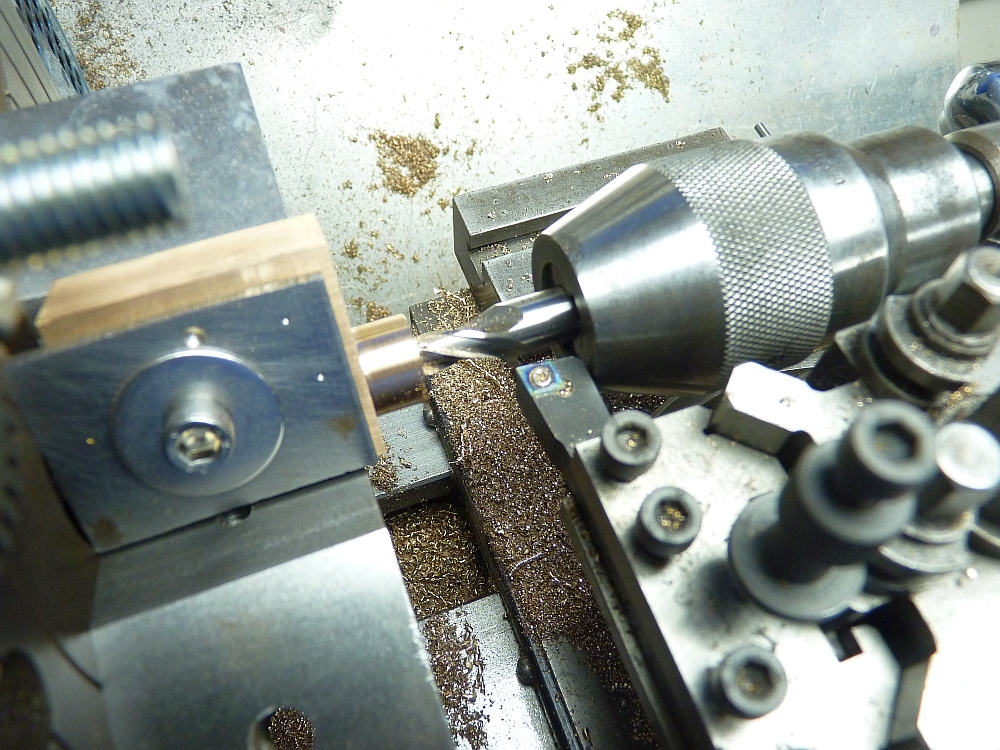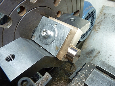 To set the 'stop' I put the milling cutter in the tailstock chuck and slid it up to the boss so that it touched the face and clamped the tailstock. Next, I engaged the leadscrew and moved the toolpost back towards the drill chuck until it was nearly touching and the dial on the leadscrew handle read zero. I then moved the tool back until it touched the end of chuck using the topslide feed screw. This is easier than just winding it back all the way with the leadscrew handle as the dial is fixed and not 'zeroable' and saves having to remember the number on the dial and working from that. It was then just a case of winding the tool towards the chuck the required depth using the leadscrew dial and locking the saddle. To drill the hole I just moved the tailstock barrel until the chuck touched the tool again. I saw this method on Youtube I think. I've never used it before but it works quite well. The tailstock barrel does have graduations on it but only every 0.125" so you have to 'guestimate' anything inbetween so it's not particularly accurate or repeatable. One day I will probably adapt a digital caliper to fit the tailstock and give accurate depth readings as many people have already done. The finished boss with counterbore: