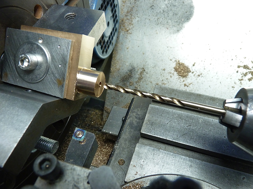 After that, the casting was returned to the lathe and the hole drilled using the 3.7mm drill with no trouble at all. I did have to stick the drill out of the tailstock chuck as far as I dare though to get it to reach all the way through!