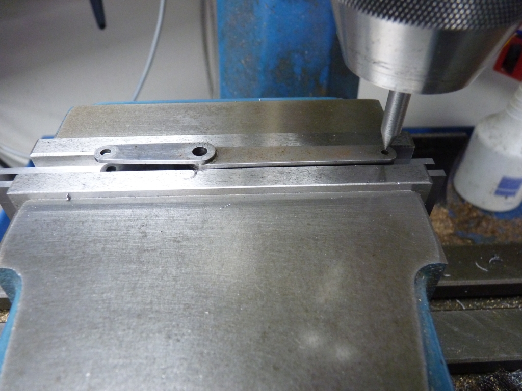 I did consider fitting a bronze bush to the pivot hole of the long lever but it only rocks to and fro so I think the combination of mild steel on silver steel will be fine. The pivot holes for the short lever in both the lever itself and the end of the long lever originally had a 0.125" pin through them which was again a bit of a sloppy fit so I drilled and reamed them out to 4mm which was the next size up in silver steel that I had. I also drilled and reamed the ends of the levers to 0.125" to increase the bearing surface for the link pins.