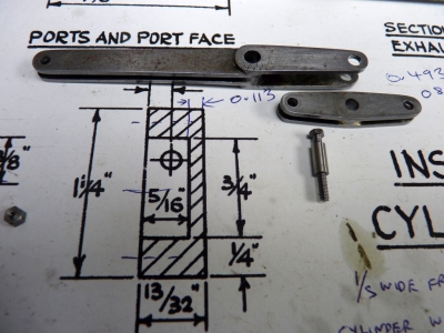 I made a new pivot pin for the short lever from silver steel and drilled it to take a 7BA bolt to retain it in position (my favourate method of making valve gear pins). I'm halfway through making some 0.125" pins for the links that connect the ends of the levers to the valve spindles.