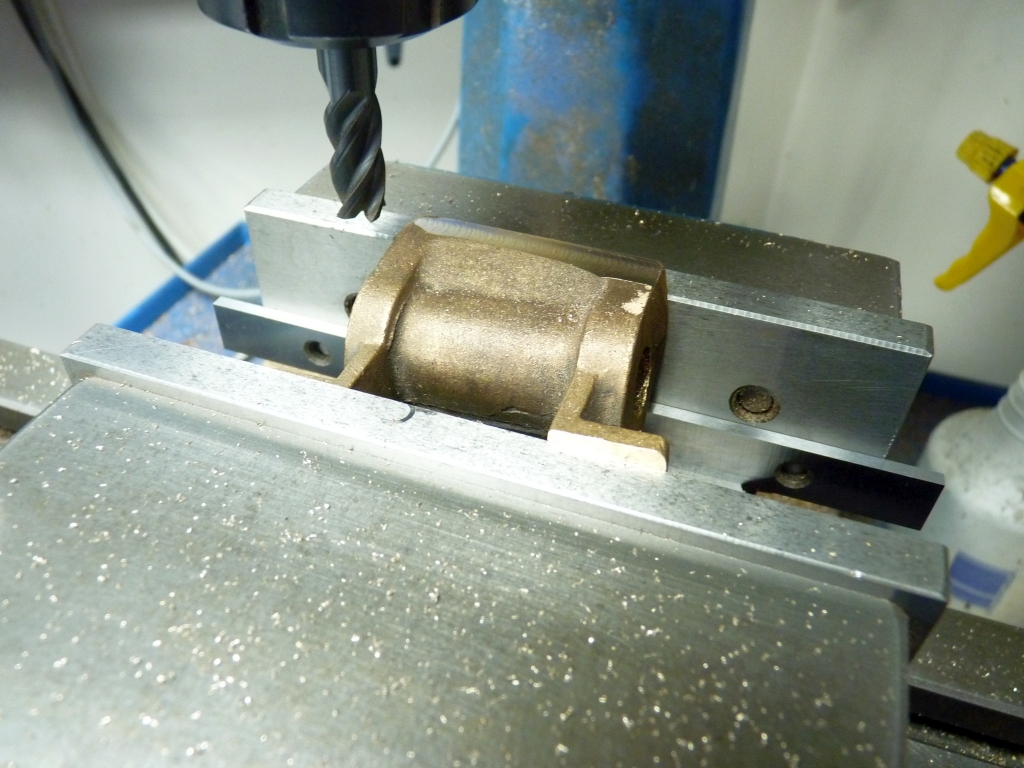 The casting was turned over with the just machined surface on a parallel and the other edge of the steamchest machined.