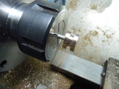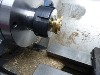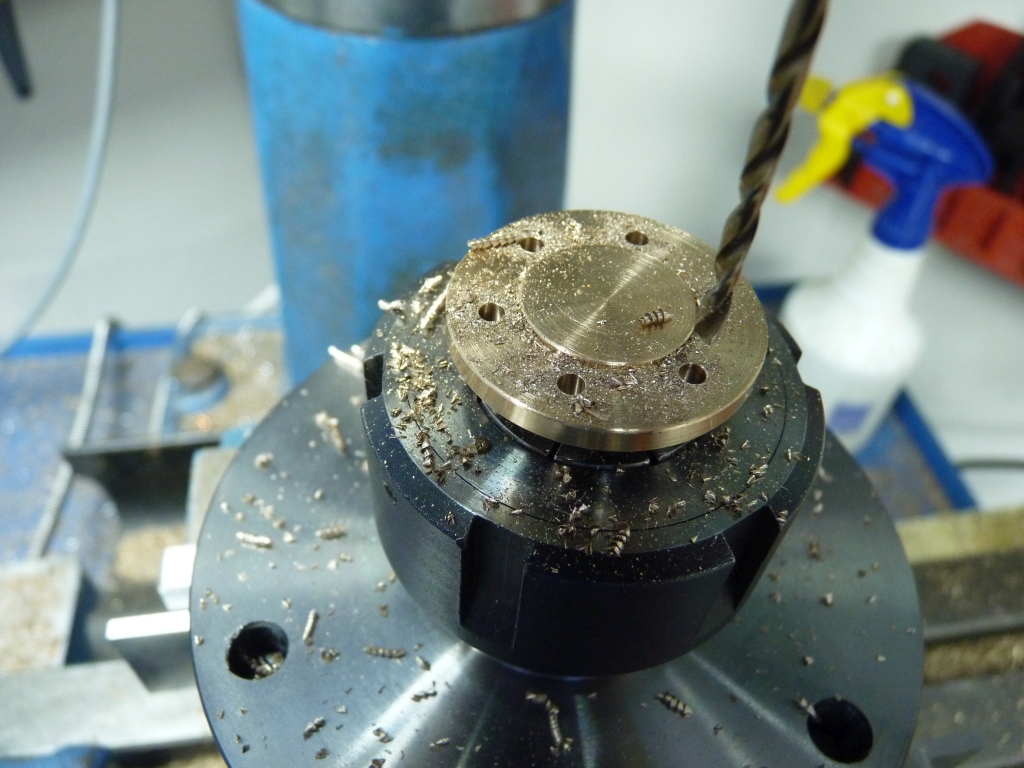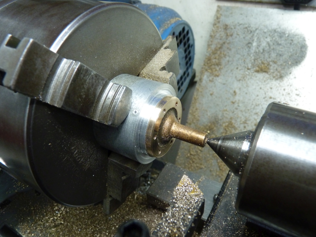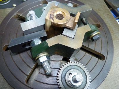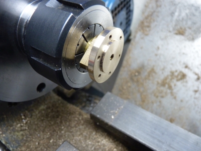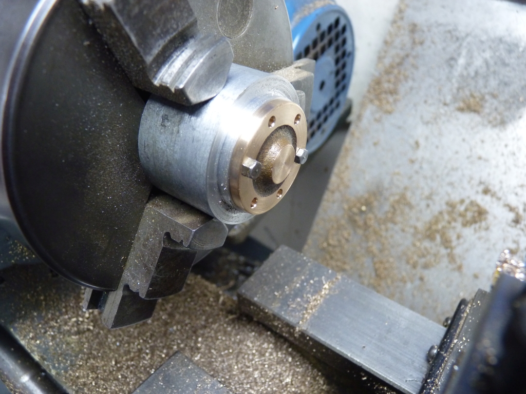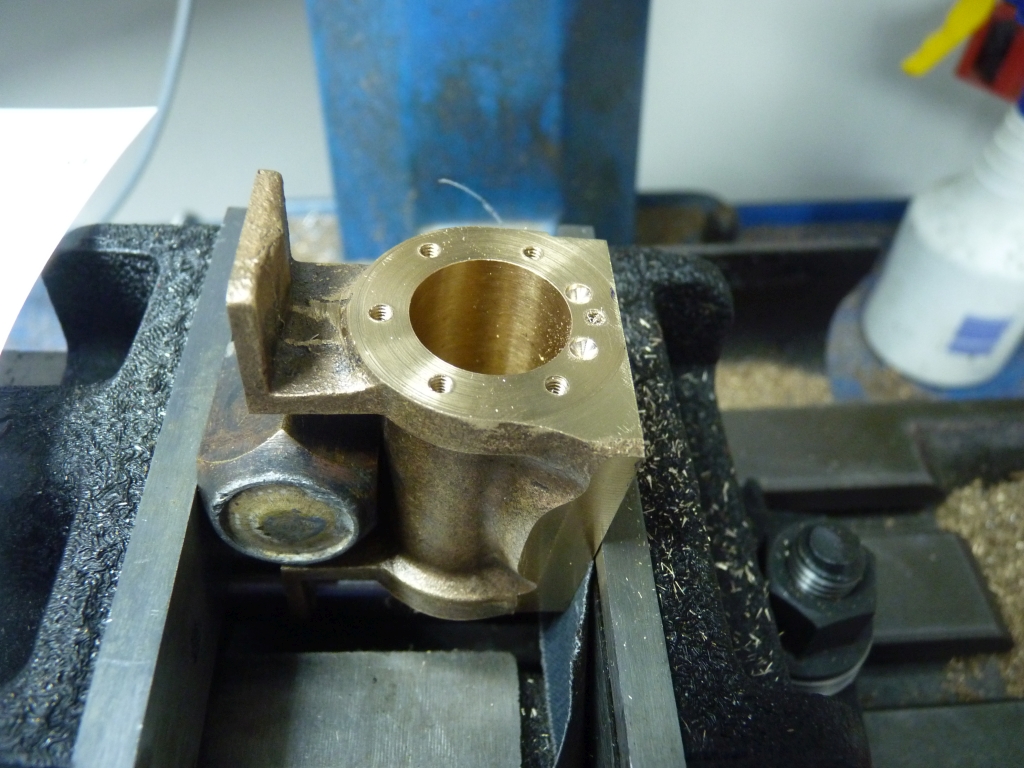 The spigot was then sawn off and the jig drilled and tapped for a couple of bolts to hold the cover in place. The remains of the spigot could then be machined off.