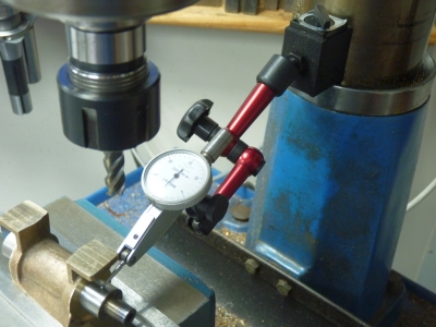 I used a 14mm endmill to 'bore' the cylinder to a depth of 0.125", just to give an edge for the indicator to run on. An endmill was ideal for this as the core of the casting was not perfectly round and a drill would have wandered off. I could have bored it but the endmill was easier and quicker.