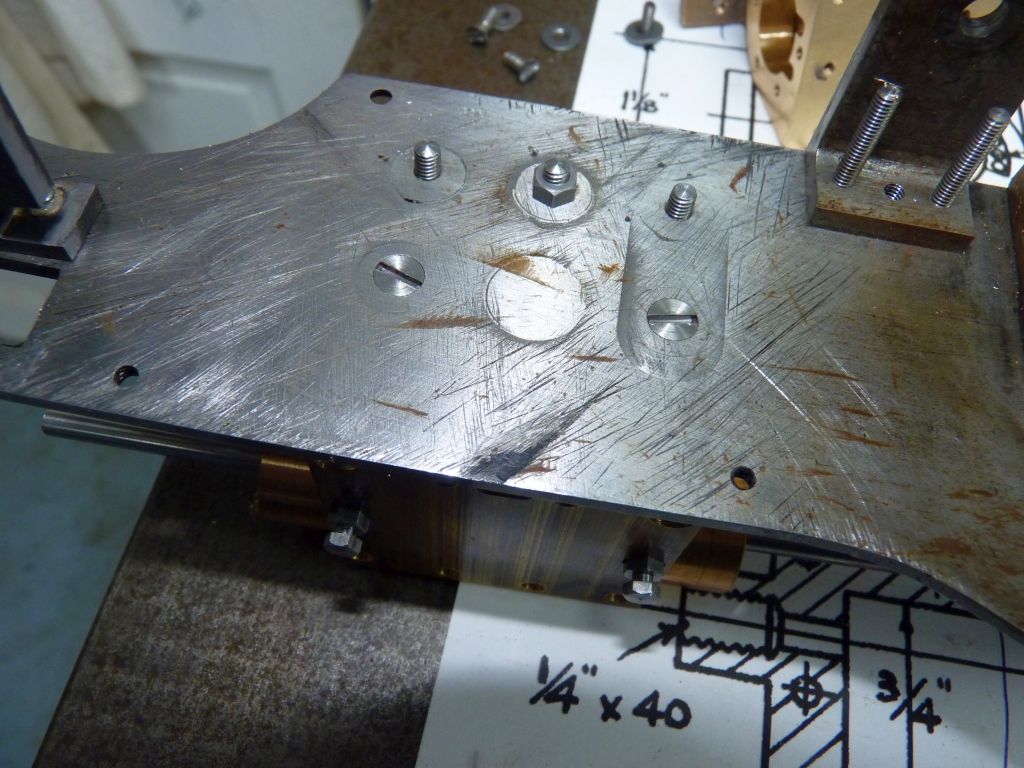 The holes in the frame plate were opened out to 5BA clearance after the cylinder had been removed and then countersunk on the outside face to take the fixing screws. Finally, the holes in the cylinder lugs were tapped 5BA. I reassembled the frames and fitted the cylinder in position and the mounting holes all lined up perfectly.
