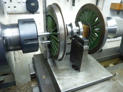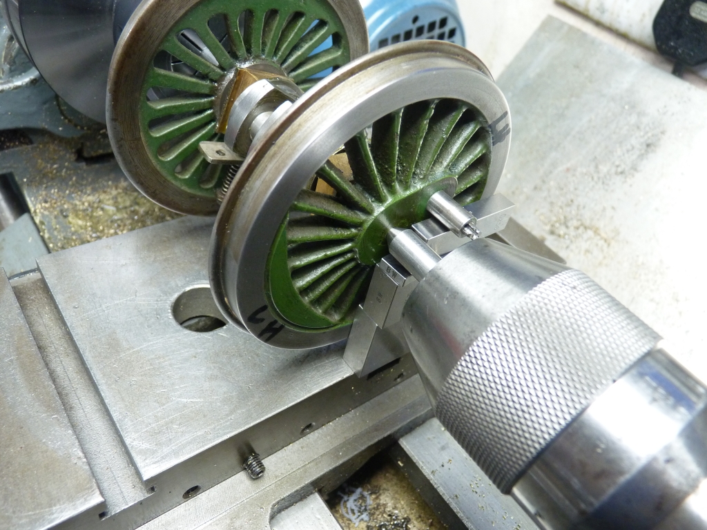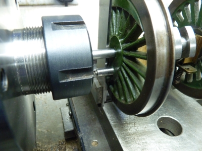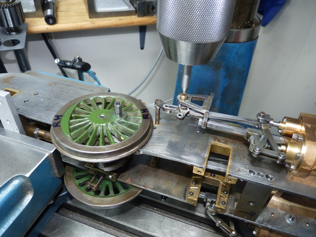 So, the angles are correct but the righthand and lefthand cranks are reversed in the 'firing order'. That obviously doesn't affect the running in forward gear as it runs quite well. I would have thought that if there was a problem then it wouldn't run in forward gear either. Maybe the fact that it doesn't like running in reverse is just that the valve gear is not very good? I have modelled the valve gear as drawn by LBSC in the Wallace simulator and after getting rid of the negative lead it actually is pretty good. However, I haven't checked things like the length of the eccentric rods which can badly affect the equality of the forward and reverse running. More investigation is needed. 18/02/2021 First a few photos of how I measured the position of the cranks on the driving axle. The axle was held between centres in the lathe. The centre held in the collet chuck is 0.25" diameter, the same as the diameter of the crankpins.