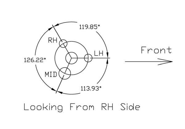 With the loco going forwards, the righthand crank should lead, followed by the lefthand crank and then the middle crank. The angle between the middle crank and the righthand crank should be 114° and between the middle and the lefthand cranks it should be 126°. The first thing I noticed was that the cranks had been set up with the lefthand crank leading followed by the righthand crank and then the middle crank. I don't think this makes any difference to the valve timing for the middle cylinder so long as the angles are correct. It definitely doesn't make any difference to a two cylinder loco which crank leads. It's just a convention for the righthand to lead. I didn't take any photos of the set up I used to measure the crank angles but I'll try and remember to take some tomorrow and add them. Basically I set the wheels up between centres with the righthand crank at the bottom and in line with the vertical centreline of the lathe axis and then used gauge blocks to measure the height of the other two cranks from the cross slide of the lathe. A quick CAD drawing and I had the results although they probably were a bit innaccurate due to the method I used. The centres in the ends of the axle are not brilliant so the axle may not have been centred properly. However, it would give me some sort of indication of the position of the cranks. To my amazement the angles came out virtually spot on! I wasn't expecting that at all. They are certainly within a degree I would think even allowing for a bit of error in my measurements.