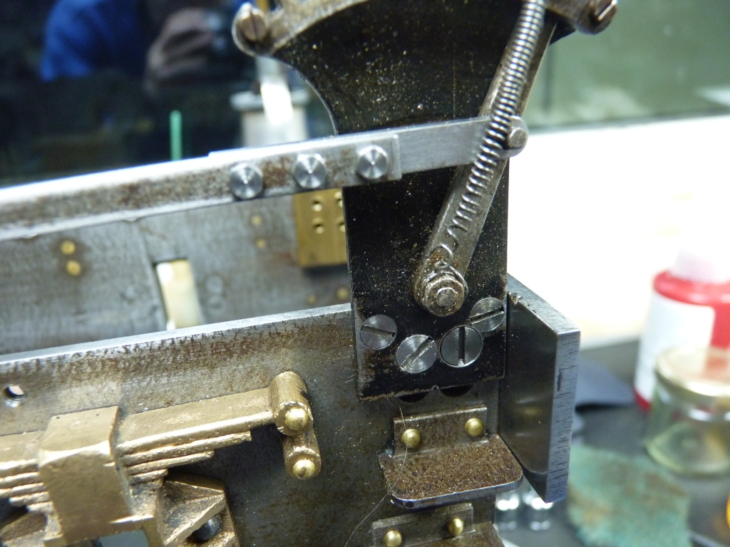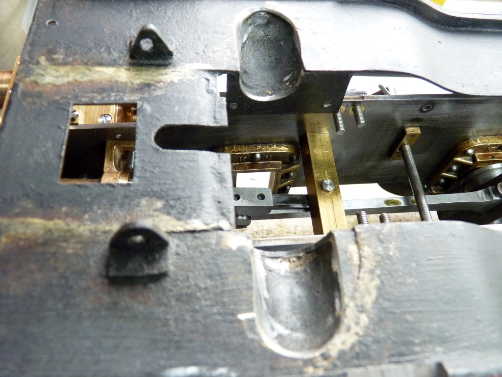 Another job I did was to fit some lugs to the motion brackets to fasten them to the ends of the slidebars which hopefully will stop the motion brackets from flexing like they do. I'm going to have to modify the holes in the end of the slidebars to take countersink screws as the top of the connecting rods hit the screws if they are ordinary roundhead ones. I discovered this when I ran the chassis on air again.