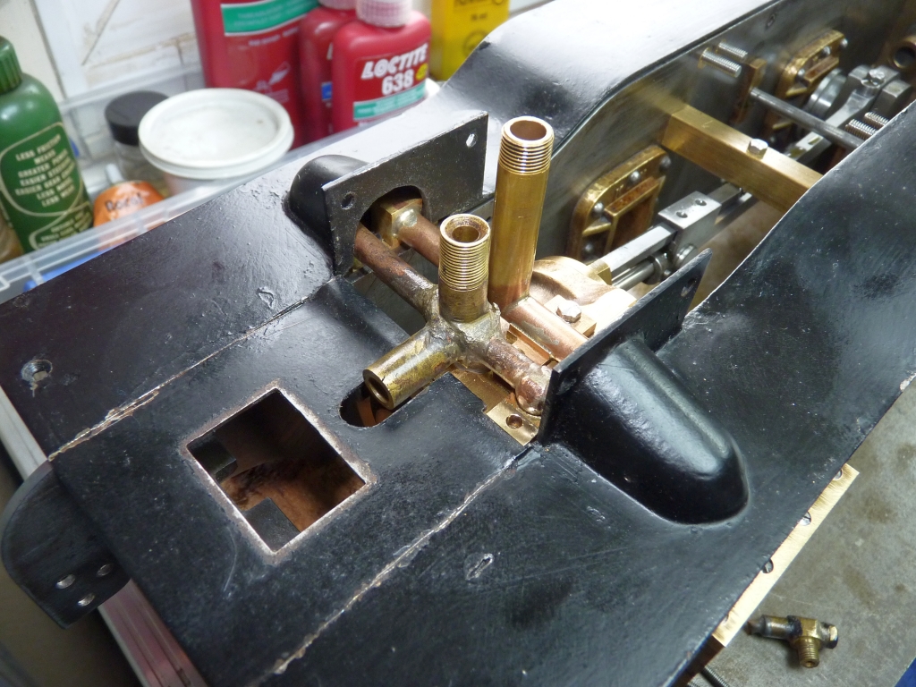I was going to solder the extension on permanently but the rod has to go through a slot in the running boards and I didn't want to make that any bigger to clear the extension piece. It will be fine with the three 8BA bolts. I may have to alter that spring though to make it look neater. I might be able to move it to the other side of the reverser. I did a bit of final fitting on the steam and exhaust manifolds to make sure everything clears everything else. I will have to replace some of the roundhead fixing screws on the exhaust flanges with countersink ones to clear the bottom of the running boards as there is not a lot of clearance. I've also had to fettle the cutouts in the running boards that fit over the manifolds as they fouled the flanges on the manifolds and the running boards wouldn't sit down onto the top of the frames properly. Fortunately, it was possible to remove some more metal from the edges of the cut outs with drum sanders without breaking into the covers that are soldered on. I did have to trim the front flanges on the steam manifold to the bare minimum though to get them to clear. I think the steam manifold is slightly further forward to where it was originally which has caused the issues.