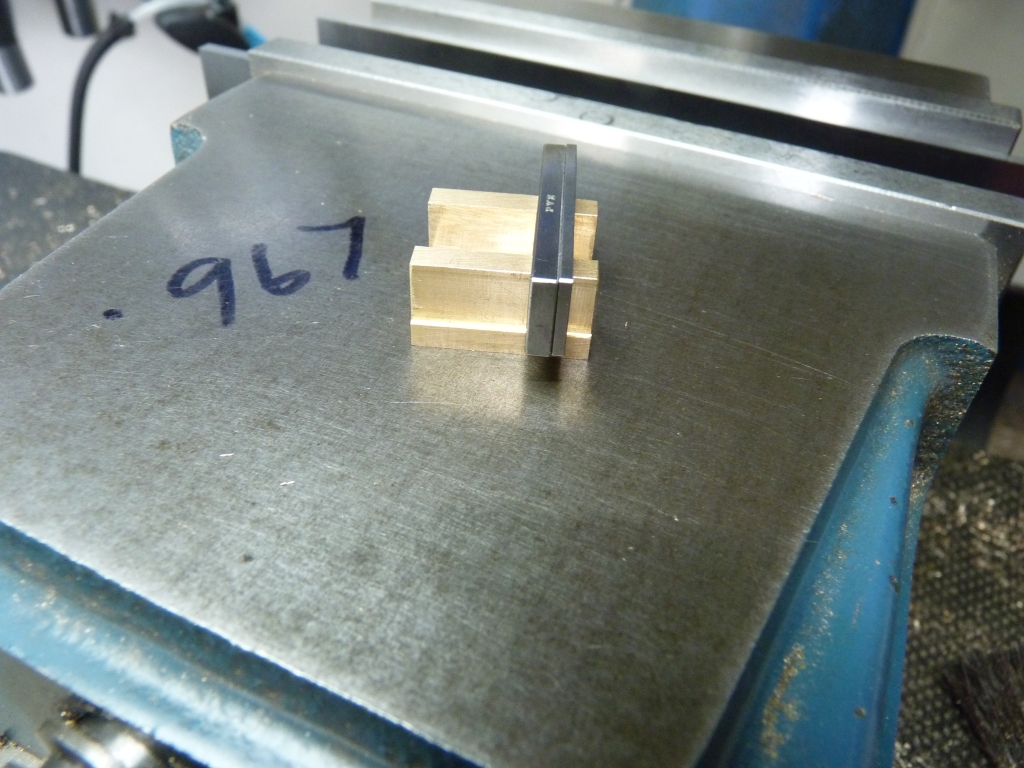 All the steam and exhaust pipe joints will now have O rings so I won't have to faff around with gaskets or sealant. Time to machine the valves to final width. I was a bit worried about clamping the valves in the mill vice because of the deep slot in them for the valve rod to pass through. If I was a bit heavy handed the valve would probably bend! To get around this I used a couple of gauge blocks that pushed into the slot with a nice tight fit. The valve was now solid and strong enough to be clamped across the vice.