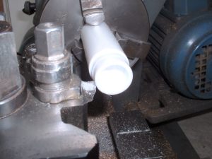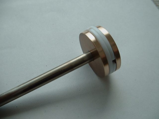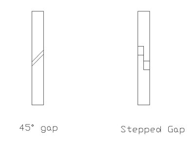 24 Much thought was given to the design of the rings and what information was available was studied. There appears to be surprisingly little on PTFE piston rings published so I was working in the dark to some extent. Obviously a gap of sorts would be necessary to cater for the high expansion of the PTFE and there seemed to be various ways of doing this. One way is to turn the ring to size and then cut it through at 45° so that the joint overlaps. Another is to make an overlapping stepped joint but this seemed a bit fiddly to make.