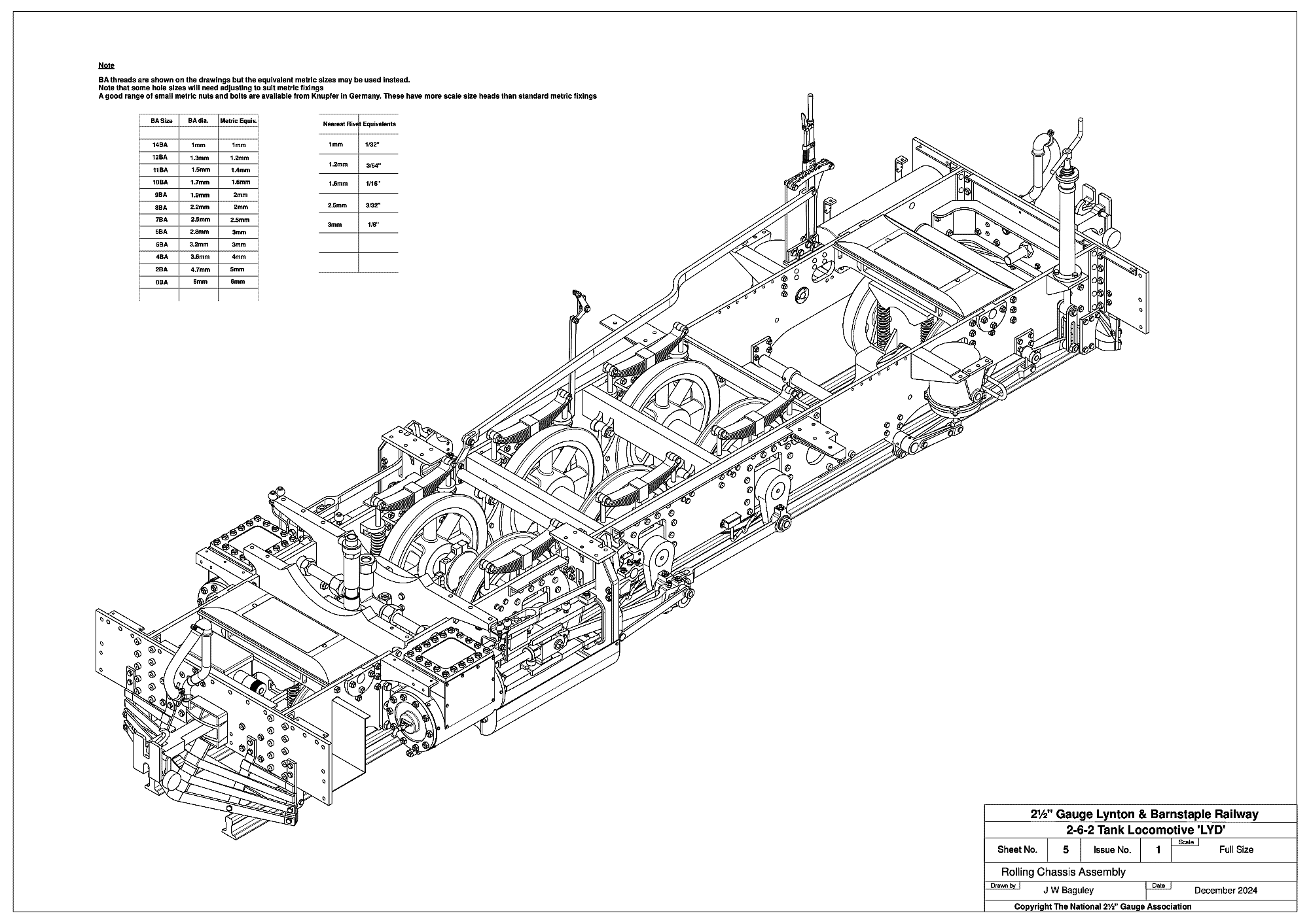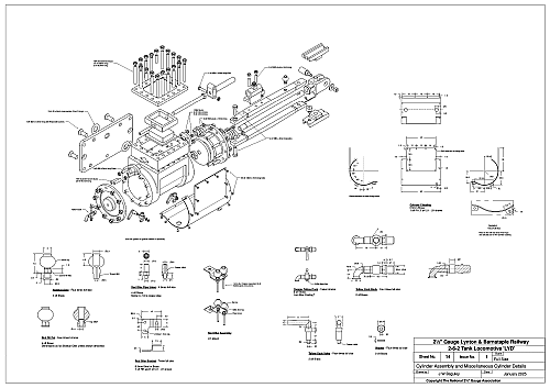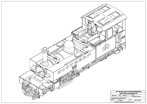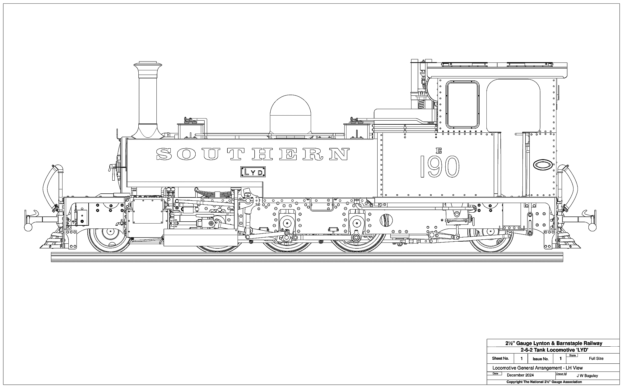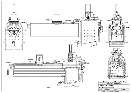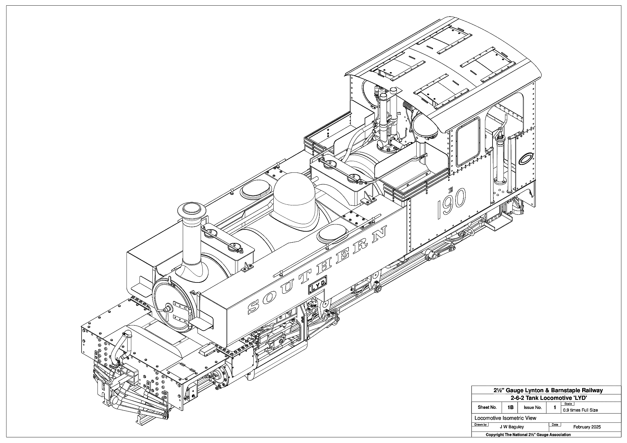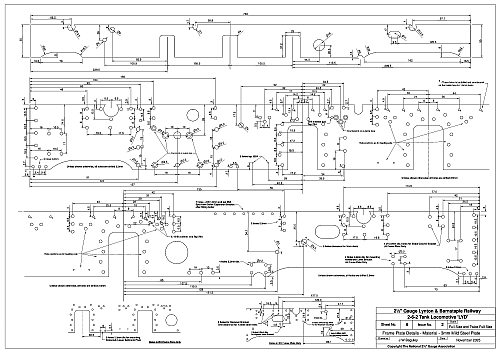05/12/2025 This is a locomotive that I have designed for the National 2½" Gauge Association. It was originally started by Clive Young as a personal project but fell by the wayside so the Association has taken it over. It has been designed using 3D CAD and original works drawings for 'LEW' which the new build full size loco 'LYD' has been based on. It has been about three years in developement and drawings are now available from the Association. The drawings consist of 48 sheets and are very comprehensive. Rather than describe the build of the prototype on my own website I have decided to put it on the Association website instead but I will put some updates here as well. You can access the build notes here: Laser cut parts will be available from Model Engineers Laser (some are already available) and castings are in progress. Sample drawings are shown below. Clicking on them will take you to a larger image.