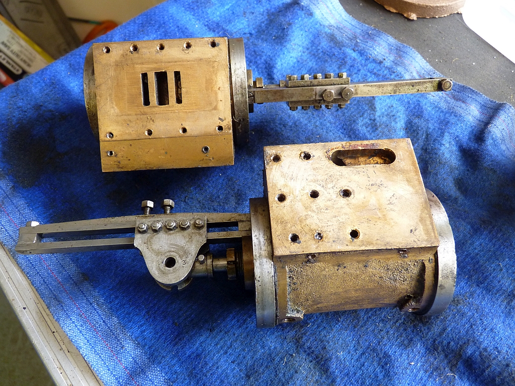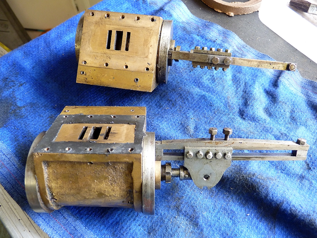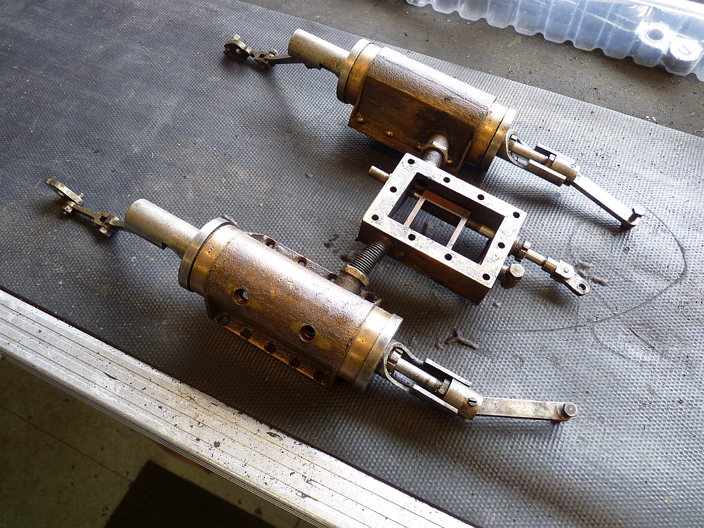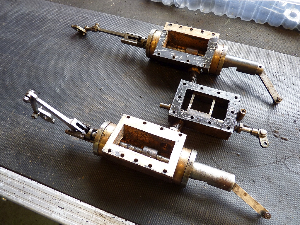 Crank Axle Pump Eccentric and Strap The cylinders came off quite easily but you have to remove all three valve chests together as the steam pipes that connect the outside steam chests to the inside one are threaded at both ends so that you can't remove the steam chests individually. I had already looked in the inside steam chest which was very dry and the outside ones were also very dry with no sign of oil. Fortunately, the port faces seem in quite good condition with very little wear but I haven't looked at the cylinder bores yet.