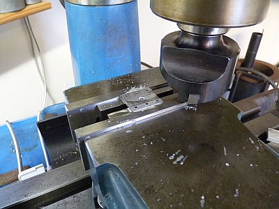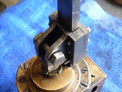 The top surface of the bottom part was badly scored and it wasn't actually parallel to the piston rod and only touched the slidebar at one end. I set it up in the mill with the piston rod resting on a parallel in the mill vice and skimmed the top surface with a fly cutter to get it flat and true again.