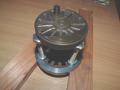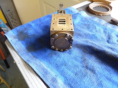 The axle pump assembly is held with just three screws so came off easily. It's a neat design with two rams being operated by the one eccentric via a rocking arm and a connecting link.