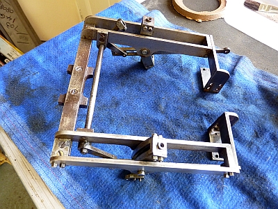 The stretcher was then removed to drill and tap these holes. I think it took longer to tap the holes than to make the new stretcher as the steel was horrible stuff to tap and was very 'gummy'. I had to take it very slowly withdrawing the tap and cleaning it every turn or so as I was afraid of breaking the tap otherwise. When refitted and the mounting screws installed the crosshead moved nice and freely so it all must line up properly now.