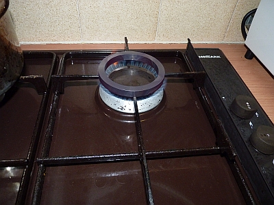 The rims were simply heated up on the gas stove and then dropped onto the wheel centres. I heated them to a very dull red but I don't think they needed to be that hot as there was quite a gap between the wheel and the rim until they cooled down.