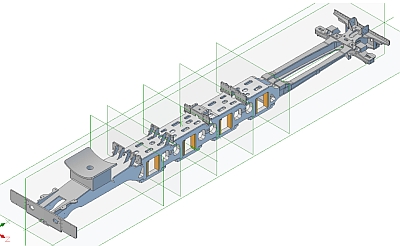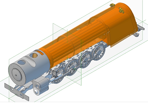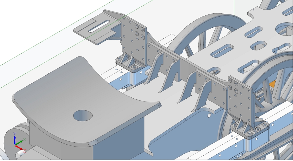 There are lots of other brackets all the way along the chassis to support the platforms that run along the sides of the loco. I also modelled one that fits inbetween the frames just behind the two in the photo above but I may not need that. Red Devil has a much longer smokebox than the standard 25NC and the section of platform at the front and under the front of the smokebox is much shorter so this bracket may not be needed. The side platforms are also extended on Red Devil so the front brackets for those may be entirely different. Something to be looked at later. So, the chassis so far: