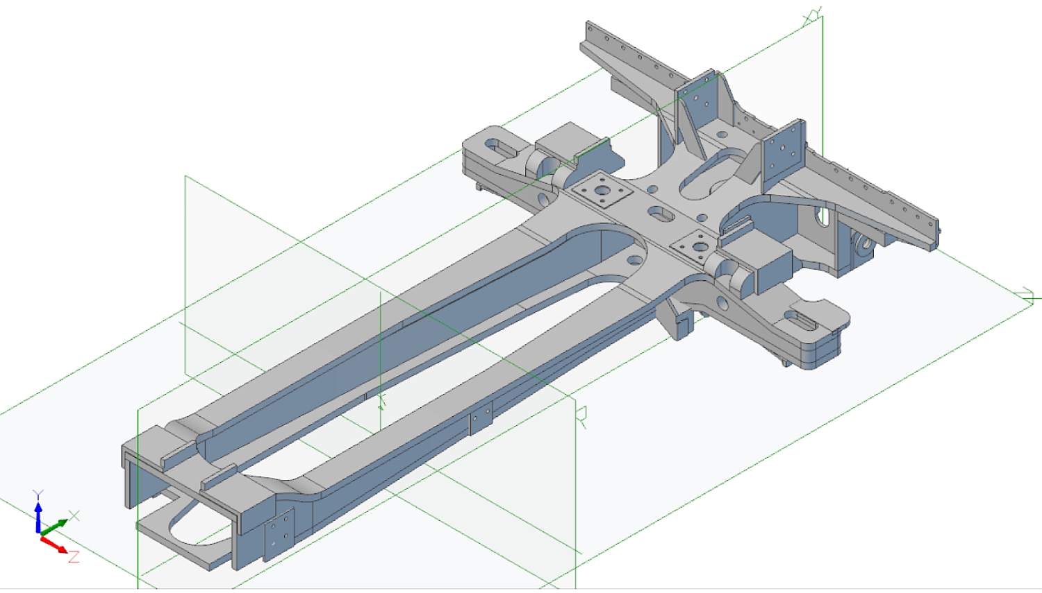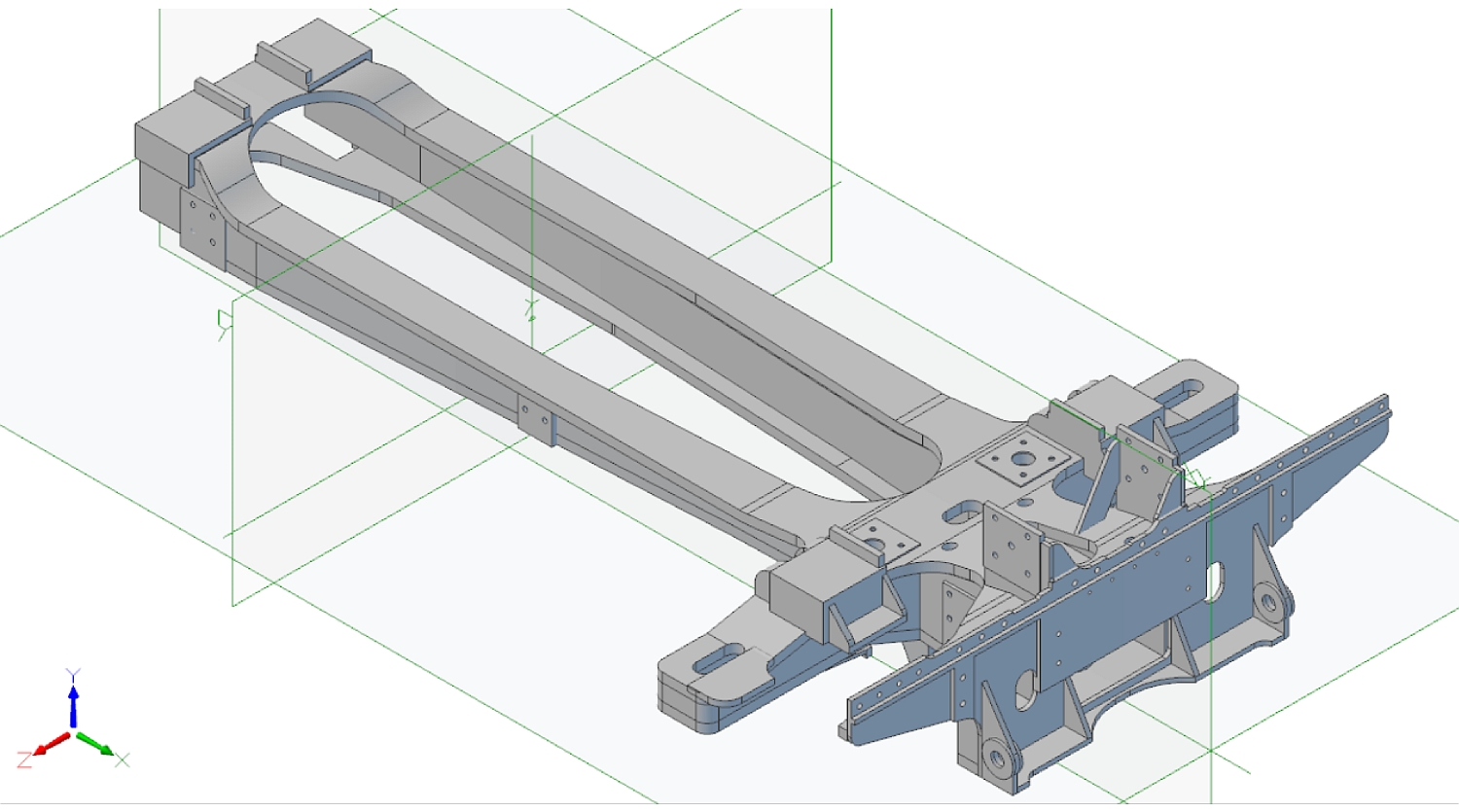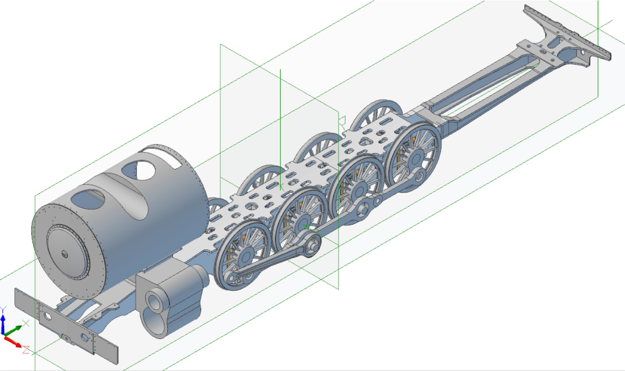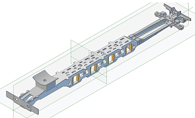 All I've got to do now is come up with the best way to fabricate it all and then finalise the individual pieces. The two vertical brackets at the rear of the cradle are for the rocking grate cylinders but I don't think I'll be fitting a working version of that! The complete frame assembly so far: The overall length of the frames is 33.25" (844.55mm).