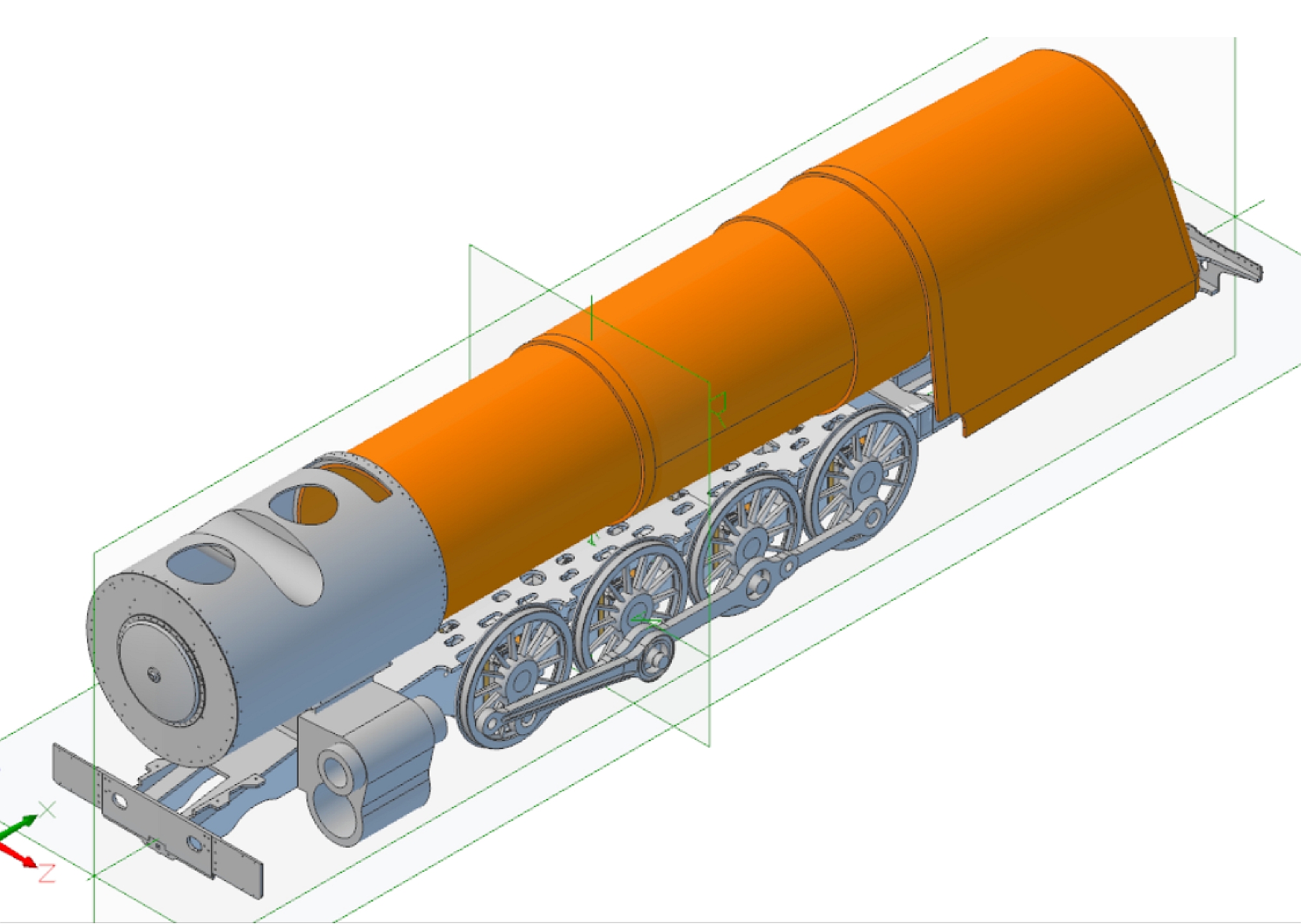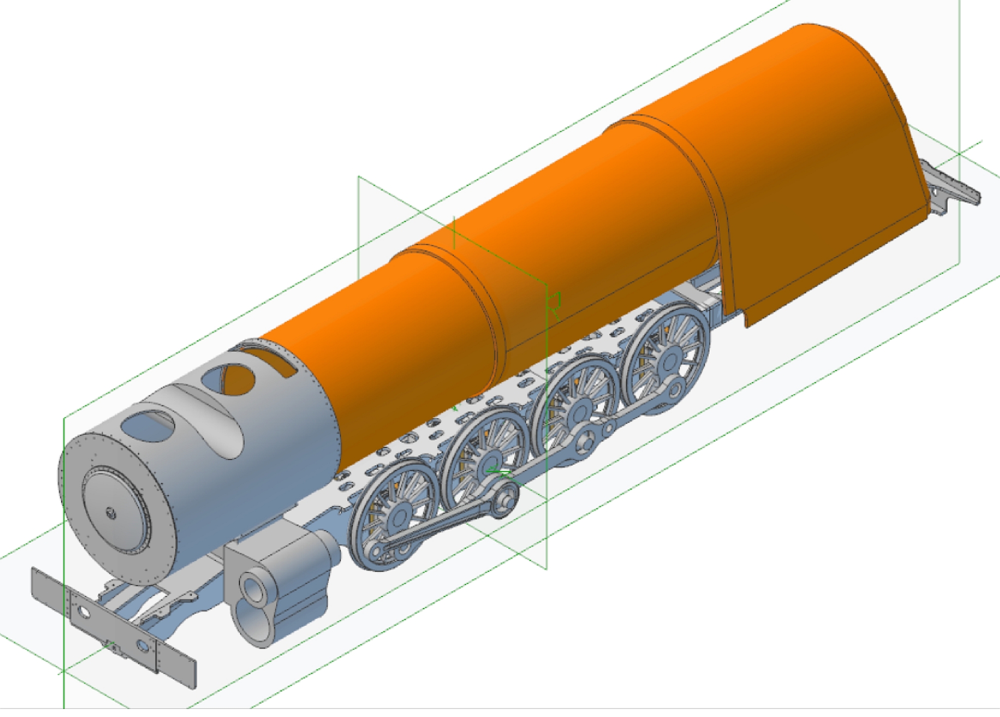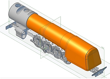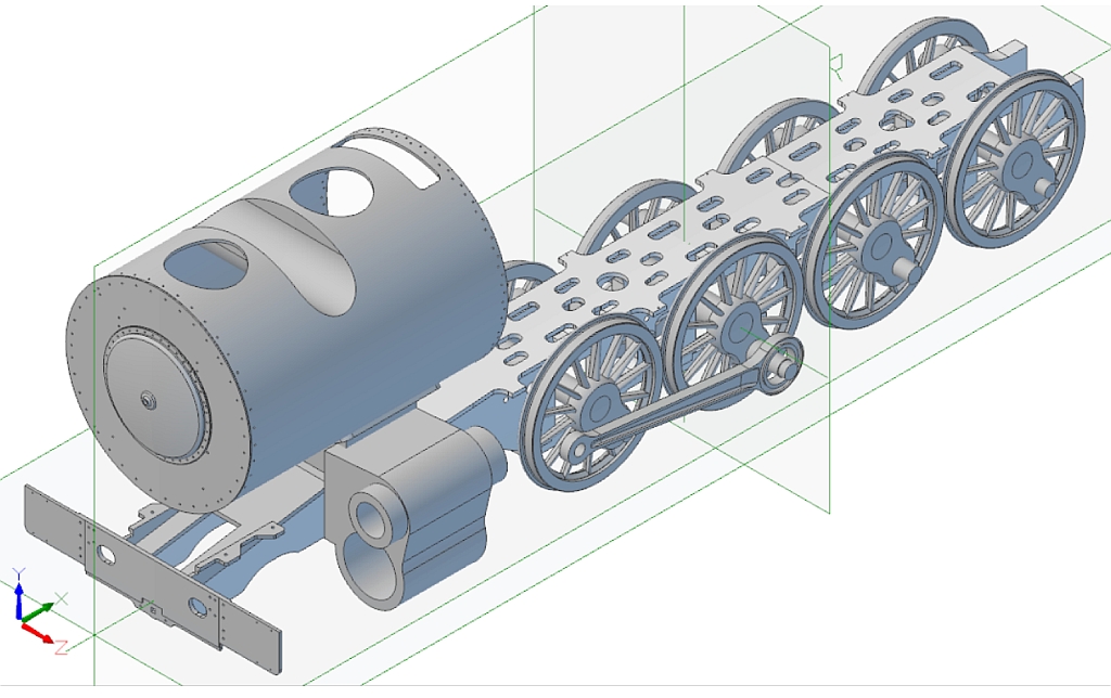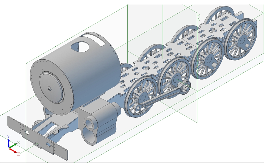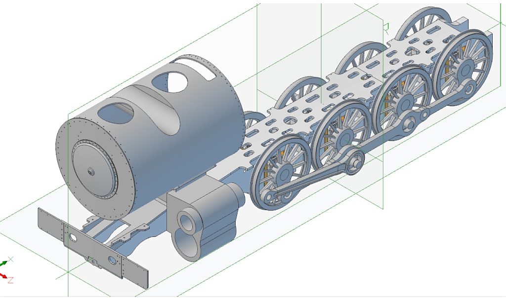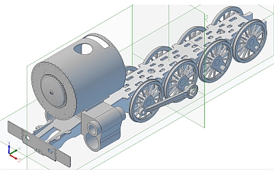Some years ago I came across Jim Nolan's website on which he is describing the construction of a South African Railways Class 25NC locomotive in 7.25" gauge: Up until that point I had not had much interest in locomotives outside of the UK but this soon changed after I spent many hours on Youtube watching videos of SAR steam locomotives in action. I really like the look of them now - sort of a cross between British and American locomotives. More 'blobs and gadgets' than the British locos but not as 'busy' as the American. The 25NC class (class 25 - Non Condensing) is basically an American 4-8-4 Hudson running on 3' 6" gauge track but I've decided to go one further and build a 2½" gauge version of the famous class 25 loco number 3450 which David Wardale converted into the sole member of the class 26 - Red Devil. The conversion and following testing of Red Devil is described in David's book 'The Red Devil and other tales from the age of steam' and is a must read for anyone who is interested in the design of modern steam locomotives. The book had been out of print for many years and copies exchanged hands for large sums of money. Fortunately, Camden Miniature Steam Services obtained permission to reprint the book and it is now available once again. So far as I know there are no drawings as such for Red Devil itself but the drawings for the class 25NC were available until recently from South African Steam run by John Young so I bought a cd containing all the full size drawings a couple of years ago. Unfortunately, John has decided to close down his website but had a 'closing down' sale at the end of last year and offered all the drawings that he had as a 2 DVD set so I decided to buy that as well. Armed with the 25NC drawings and David Wardale's book I hope to be able to produce a reasonable copy of the full size Red Devil which I believe is now languishing in South Africa somewhere awaiting it's fate. Hopefully, someone will set about restoring this historic locomotive and run it again. At this point I should say that for the time being this is a computer only project as I have quite a few other projects that I would like to complete first. There is going to be an awful lot of design work involved as all I've got to work on are the full size drawings. Fortunately, the full size drawings are virtually complete and of very good quality and easy to read, unlike some! Even in 2½" gauge this locomotive will be big! The scale works out at 0.7143 inches to the foot, slightly less than that for 3½" gauge, but the loco is similar in size to a small 5" gauge. The overall length will be about 65", cylinders scale to 1.43" bore x 1.67" stroke, and the boiler barrel will be 4.75" diameter. I printed out the loco and tender GA at full size for 2½" gauge and that's when you realise just how big it is! I made a start on the frames some time ago and have done a bit more recently. The full size locos had the frames and cylinders as a mind blowing one piece casting which isn't going to be practical to copy, even in 2½" gauge, as they are just too complicated. Instead, I am going to use separate bar frames for the main part and then fabricate the front buffer beam and rear cradle sections to make the whole look something like the original from the outside. The cylinders and smokebox saddle will be separate castings or fabrications as well that bolt onto the frames. At the moment I am just doing rough 3D drawings to get some idea of how things will fit together and then the individual parts will be refined into the finished items. Work so far -