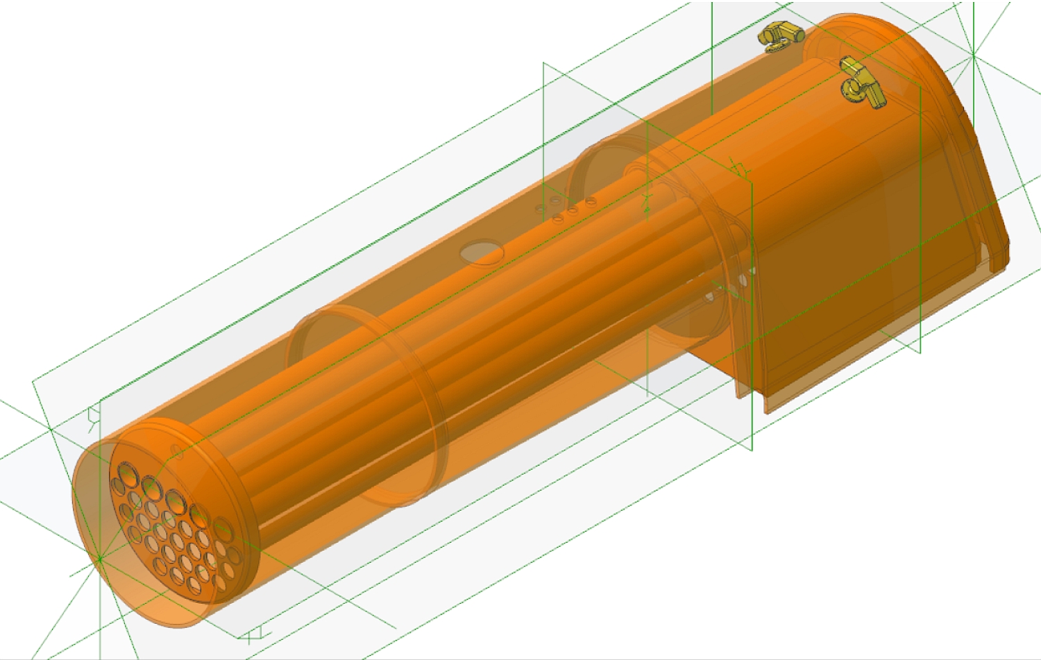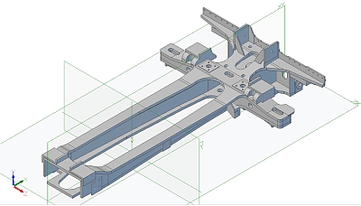 I couldn't resist modelling the smokebox at this stage to give some idea of the size. The one shown is actually for the single chimney 25NC but Red Devil was fitted with a twin lempor system so this will be replaced eventually. The scale diameter is just under 5". I decided to fit the 'top plates' to the bar frames to give the appearance of the full size casting. This will strengthen the frames considerably and add extra weight. It will also hide any extra ballast if I decide to add some to increase the tractive effort at the rail. I've had to reduce the diameter of the driving wheels very slightly as with scale diameter wheels the flanges touched. There is very little clearance on the full size loco (about 0.75") and with the oversized flanges we use this decreased to zero. I'm actually wondering whether to increase the tread width from the standard 2½" width, maybe to that of the 3½" gauge standard. The 2½" standard gives an almost scale width tyre but the extra width may help traction. One problem I discovered today is that the drawings of the coupling rods are for the original versions that gave a lot of trouble. They were eventually replaced with ones with conventional knuckle joints but there are no drawings for the later version. Looks like I will have to do some scaling from photographs to get the size and shape. 09/03/2015 Spent a quick hour this morning and modelled the Red Devil smokebox. It's nearly 1.5" longer than the standard 25NC smokebox and was presumably extended to accomodate the twin Lempor exhaust. That's unfortunate as a friend at the club had a length of 5" diameter brass tube that I could have used but now it will be too short. The cutout in the smokebox barrel between the holes for the chimneys is for the feed water heater. 22/03/2015 I've roughly drawn up the coupling rods by 'guestimating' size and shape from various photographs and drawn up a simplified cannon axlebox. These will be fitted with drawn cup needle roller bearings running directly on the axles as there isn't really enough room to fit a hardened inner sleeve without reducing the axle diameter more than I want to. At the moment I'm going for an axle diameter of 14mm. The smallest outer diameter of the bearing is then 20mm and I can fit one 16mm long. Cannon Axlebox Rough Coupling Rods 'fitted' I've also drawn up and 'fitted' the shoes that fit at the front and back of the hornslots in the frame (the 'bronze' bits in the photo above). These will increase the bearing surface of the horn slots but it might be tricky to fasten them. I originally thought of using countersink head screws through the shoe into the frame but then realised I wouldn't be able to get a drill in to drill and tap the sides of the horn slots! I was originally going to fit axle pumps (I like them, many don't!) but the one piece axleboxes make it awkward to fit eccentrics to the axle so I will probably go with injectors. Red Devil had two high pressure steam turbine driven centrifugal feed pumps fitted which were originally used on the Class 25 condensing locos but retained one injector for use in emergencies. The pumps proved pretty unreliable in practice but it seems this was due to lack of facilities left to repair and test them. I don't fancy trying to make a working centrifugal pump in this size but I could always fit an electric pump I suppose? I also started to draw up a proper version of the injector as it would be interesting to make one of the correct vertical type. The injector comes out at about 1.5" (38mm) tall so shouldn't be too fiddly to make. This will be an ideal use of lost wax casting. Start of the injector body 04/04/2015 I've been very busy the last couple of weeks doing some CAD drawings for someone so they can get some parts laser cut for their Doncaster build. Also the water pump on the car had to be changed as the bearings were shot. My brother and I spent two days in gales, rain, and sleet doing that job! I decided last night that I need to get the rear cradle done for the chassis so I've made a start on that. This will probably be the most complicated part of the whole locomotive which is why I've been putting it off! As I've been working on designing fabricated parts for Doncaster using slot and tab construction this seems the ideal way to fabricate the cradle. It would be nice to be able to TIG weld the parts together but I'll probably finish up silver soldering them. The scale thicknesses for the various parts of the cradle are quite thin - often only 1/16" (1.5mm) thick so I think I'll beef it up a bit to be on the safe side and use at least 2mm steel where possible. It should be very strong when it's all soldered together and the thicker steel will add weight as well. The cradle will consist of a top and bottom plate joined by vertical webs, all of which will need bending to shape before joining. Everything else will be tacked onto this basic structure. The basic cradle so far The cradle will have to be joined onto the main frames by a suitable means when I get that far. There shouldn't really be any need for it to be removed again so the fixings can be more of less permanent. I'll probably use countersink socket head screws which can then be filled and painted over to make the whole chassis appear to be in one piece. Red Devil so far! You can see from the assembly drawing above just how long the cradle is compared to the rest of the frames. I must find a better way to export images from the 3D package. Cubify Design doesn't have direct export to image (unlike the more expensive versions) and I'm having to use a virtual printer to produce them. I've tried a few packages and they all seem to produce quite blurred images that are nowhere near as good as the direct export versions. 05/04/2015 I had a quick look at the boiler and started modelling the shell. It's not too complicated with it having a round top firebox so no awkward throatplate to make as on a Belpaire type. The overall length is 24.6