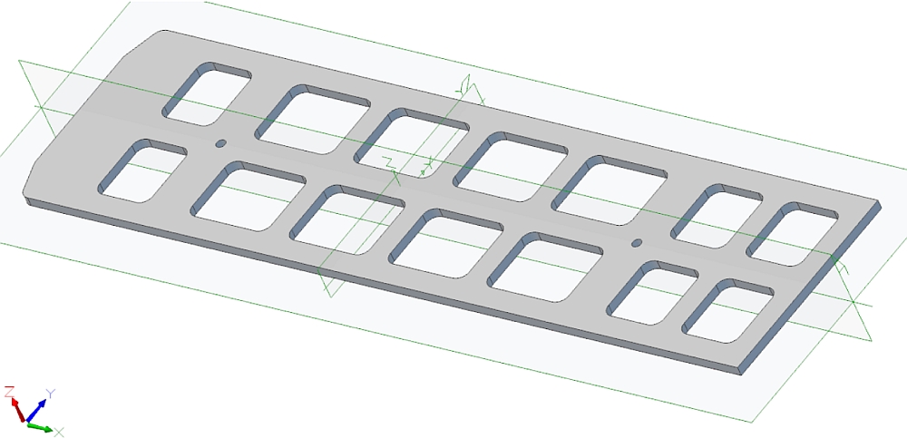 18/04/2015 I started looking at the tender the other day and the best way to build up the frame. On the full size loco the frame forms the bottom of the tender water tank and is a hollow casting but my version will be much simpler but look something like from the outside. The first idea is to make the top of the frame from a thick plate with rectangular holes to reduce the weight, add a centre spine underneath this, and then plate the underside so it resembles the full size casting. So far I've just drawn up the top plate which is 8mm steel. The size is approximately 27.5"(699mm) long by 7"(178mm) wide.