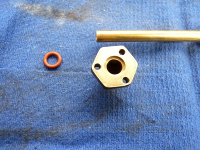 The modification was quite simple. The original threaded steam pipe was replaced with one with a plain end, the threads on the inside of the flange drilled out so the steam pipe just pushed through and a recess for the O ring cut in the face of the flange. The steam pipe was made longer so that the end protruded from the flange slightly when the flange and regulator were fitted.