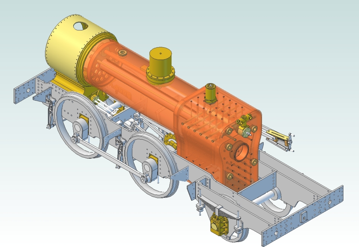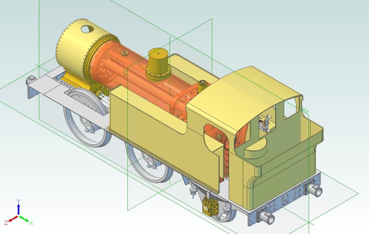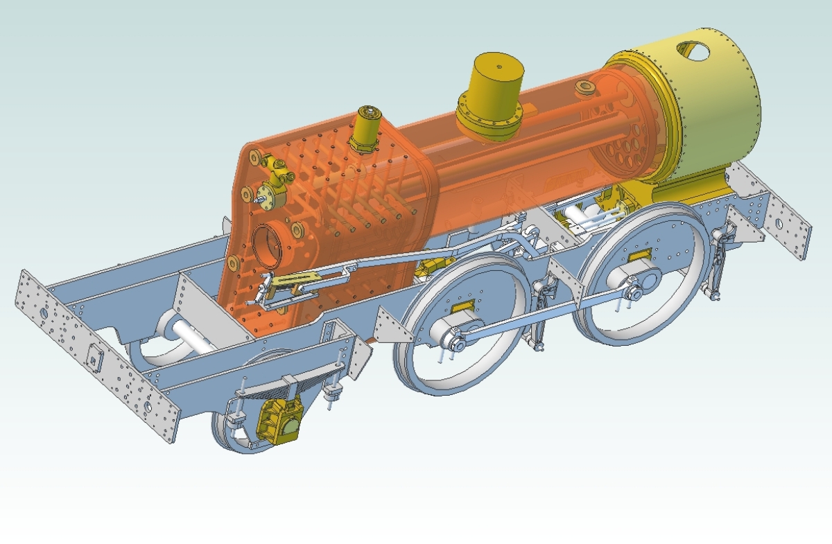 22/06/2012 Last year my brother and I helped to sort out and clear a workshop for a lady whose husband had passed away (my brother bought the 2-4-4 Forney from here). Amongst the many sets of castings were those for Didcot - the 5inch gauge 14XX by Neville Evans. I decided to buy these along with a set of laser cut frames to put away for a future project. I thought it would make a very nice easy to manage loco for running at our club. There was also a set of rather poor quality drawings from Reeves. I haven't yet received the wheel castings although there are a set of driving and coupled wheels somewhere. I'm not too fussed about those as the wheel bosses on the castings supplied by Reeves (the sole supplier for Didcot) are much too large compared to the full sized versions and so I may make a pattern and get some cast. I'd like to make my version a bit closer to scale than Neville's, with the correct slide bar arrangement and valve spindle guides etc. Polly Models do a set of drawings for a 7.25" version (based on Martin Evans's Dart) which is much closer to the original so I may get a copy of those and scale them down. At the moment I'm producing a new set of drawings using 3D CAD to find any errors in the Reeves drawings and to make sure everything fits together. I've found a few errors so far including one on the drawing for the rear sub frames. These are not deep enough on the drawings and need to be extended to ensure the trailing axle boxes are not too low in the horns. There were a set of laser cut subframes included with the castings but unfortunately they had been made to the original dimensions and so will have to be scrapped. This is definitely a project for the future as I want to finish Simply Longer first but I'll carry on with the drawings as time permits. To begin with I'm just following Neville's design and checking that out. The modifications to bring it closer to scale will be added later. The valve gear needs modifying slightly to give better events but that is mostly a matter of offsetting the suspension pin for the expansion links. They are drawn on the centreline of the slot but need to be moved forwards by about 0.0625" to equalise the cut offs at both ends of the cylinders.