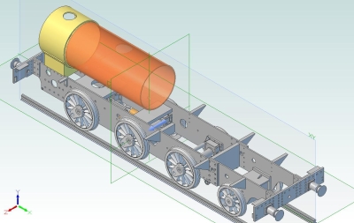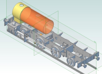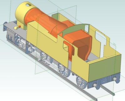 08/08/2012 I've been playing about with the boiler design and it's heading towards a Belpaire firebox with a partly tapered barrel. A bit more complicated to make but maybe the only way to get sufficient tube area to match the grate and still have sufficient water space around the firebox. The latest boiler design has twenty one 7/16" firetubes and four 3/4" superheater flues giving a tube area of about 14% of the grate area.