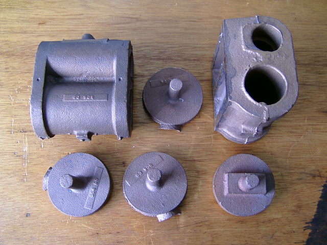 11/08/2008 I've managed to pick up some gunmetal cylinder castings very cheaply! A friend from the club emailed me to say someone was selling a set of castings for £60 so I phoned up and bought them. One of the end covers is not the correct one but there will be no problems fabricating one.