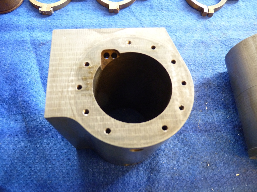 I assumed that for some reason, the Winson/Modelworks designer had extended the eccentric rods for some reason (unless these are not original?). I therefore assumed that the radius of the slot in the expansion link had been altered to suit. Wrong! When I checked the radius of the slot, it was the same as Firefly. So, we have the expansion link being driven by eccentric rods that do not match the radius of the slot! I then checked all the other parts and the positions of the weighshaft etc. on the frames and it all matches Firefly. We have a Firefly valve gear with the wrong eccentric rods. Heavens knows what the valve events are like. The wrong rods plus the wrongly assembled brackets on the expansion links must have made the valve events absolutely dreadful. The longer eccentric rods also push the expansion link too far forward so the suspension link from the lifting arm on the weighshaft and the hanger link for the valve rod are inclined forwards whereas they should be pretty much vertical, although it can be beneficial sometimes to have the suspension link inclined to improve valve events. The eccentric rods are separate to the eccentric strap and only held with a single screw so it's no problem to shorten the rods to the correct length. However, it will mean making new valve rods from the die block to the rocker arm as they have been shortened to take into account the wrong position of the expansion links. The eccentric rods appear to be a casting and look exactly like those on the Polly range of locos. I was told that when John Clarke sold the original Polly range,Winsons bought the designs and remaining parts off him and then Polly Engineering bought them off Winsons when they went bust. That could explain why some parts are very similar. The lifting arm on the reverser shaft is the same as on the Pollys i.e. a solid lump of brass. I haven't checked the eccentric positions as they are pinned to the driving axle and it would be difficult to alter them. Just have to hope they are correct! The eccentric straps are a bit of a loose fit on the eccentrics so I'll try and tighten those up a bit before I fit them again. I can get rid of the play in the forwards and backwards direction by machining a bit off the mating faces of the two halves of the straps but can't do a lot about the vertical play. Neither the straps or the steel eccentrics look particularly worn so the straps were probably a loose fit to begin with. The cylinders are machined out of solid lumps of cast iron as per Winson/Modelworks practice. I've checked the bores and they seem to be round and parallel, unlike some I've read about! The finish looks ok apart from a bit of rust easily removed with fine emery paper. The port faces are a bit pitted and scored so those will get a clean up before refitting.