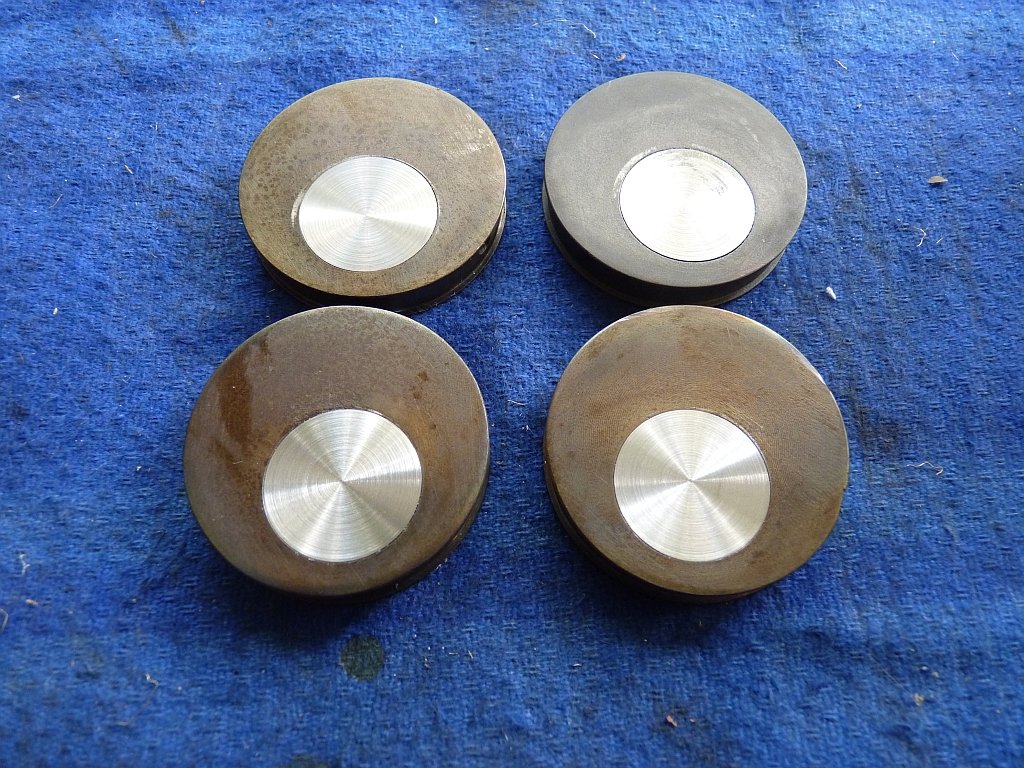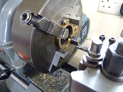 I noticed when I was doing this that the lathe (the ML7) is turning very slightly tapered so I need to make some test bars and get it set up properly at some time in the future. The bores in the eccentrics were then fitted with steel plugs machined to fit and then Loctited in ready for the new offset bores to be machined. I tried silver soldering the first plug in but it didn't take at all for some reason so that's why I went with Loctite instead. Should be ok.